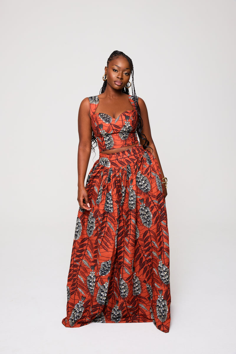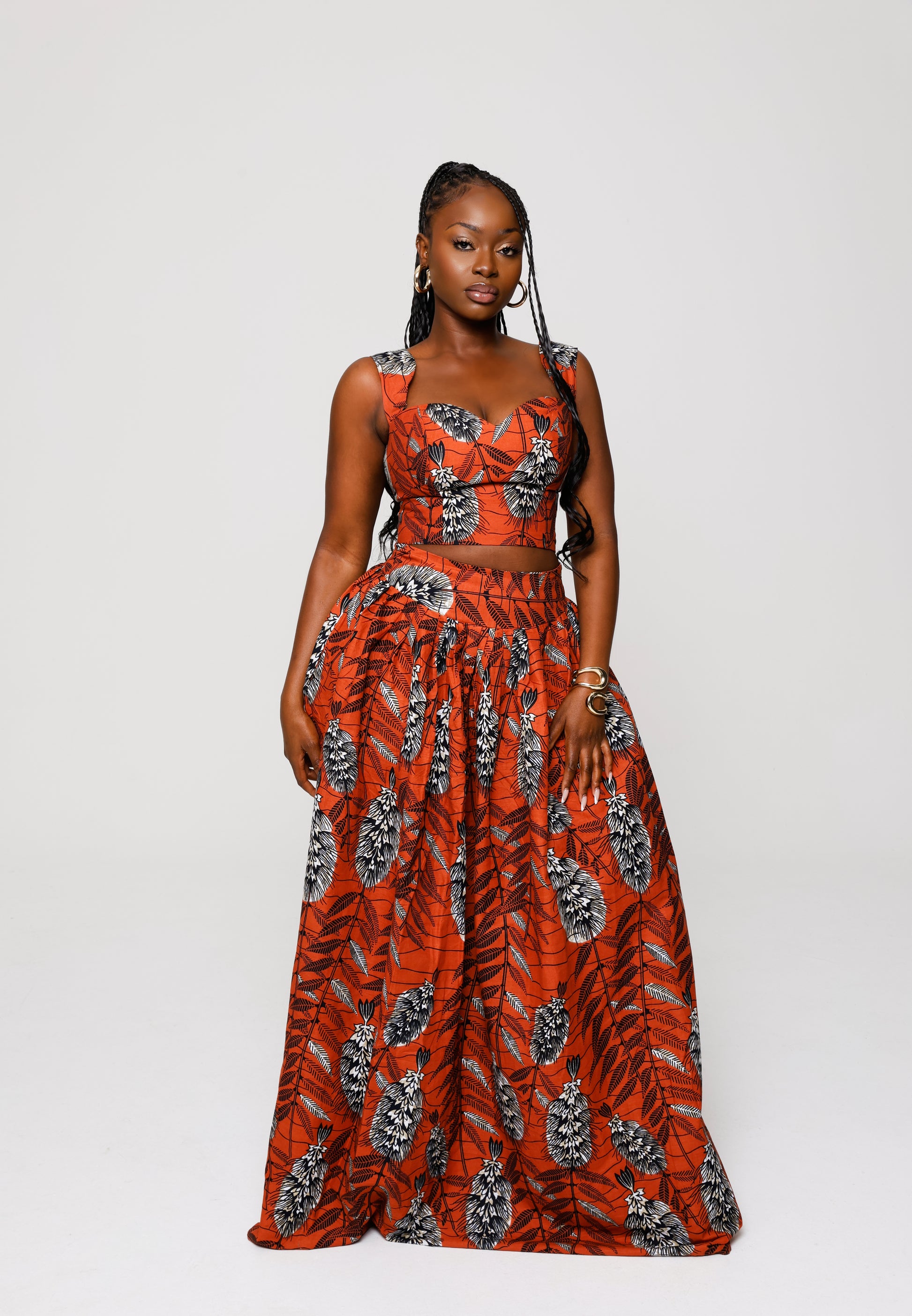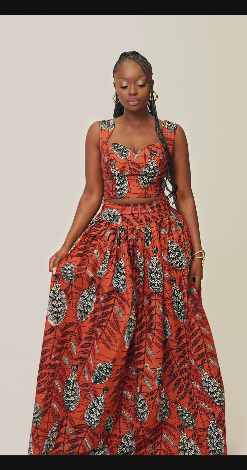 Terracotta Bloom” Ankara Crop Top & Maxi Skirt Set