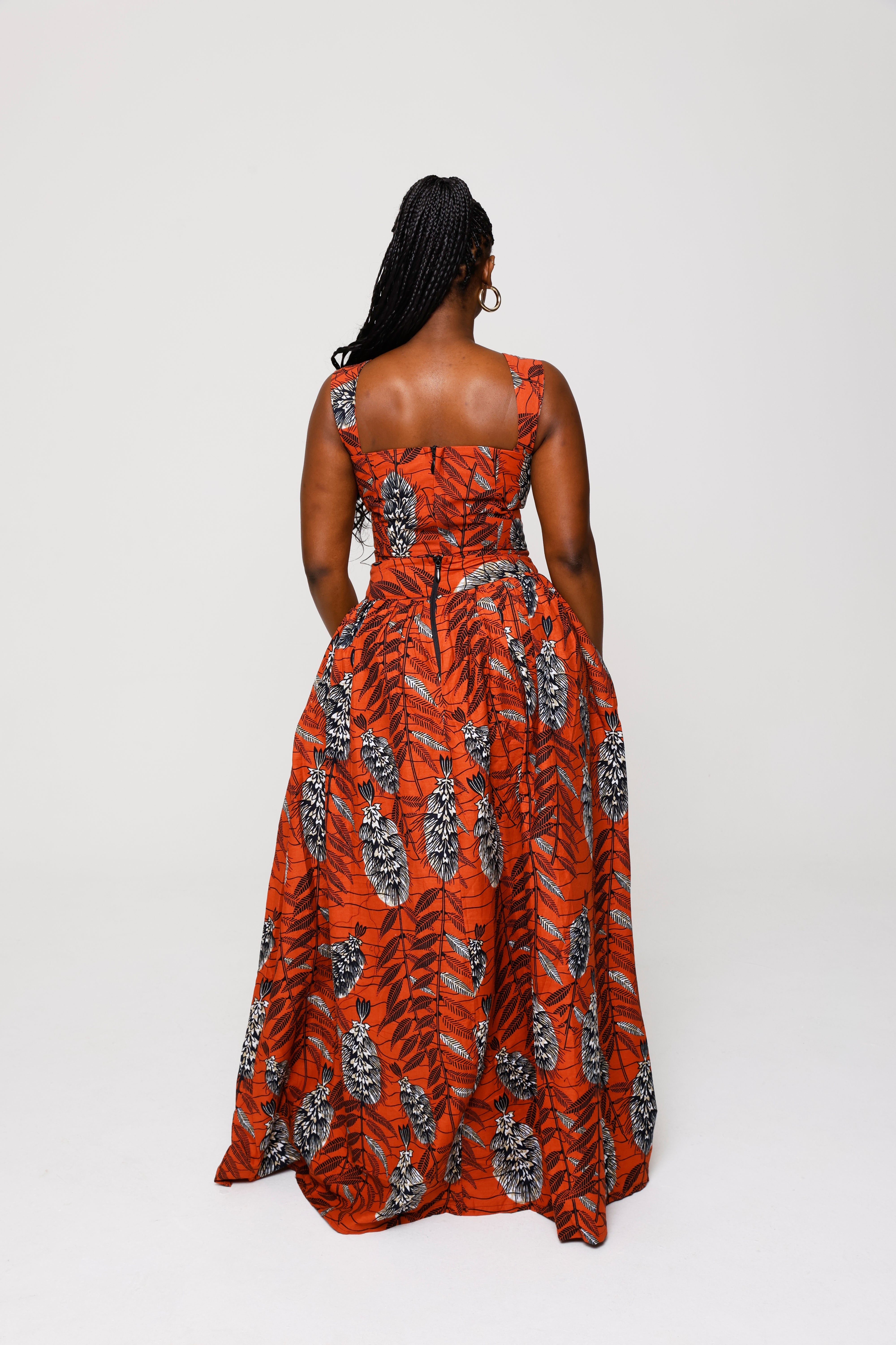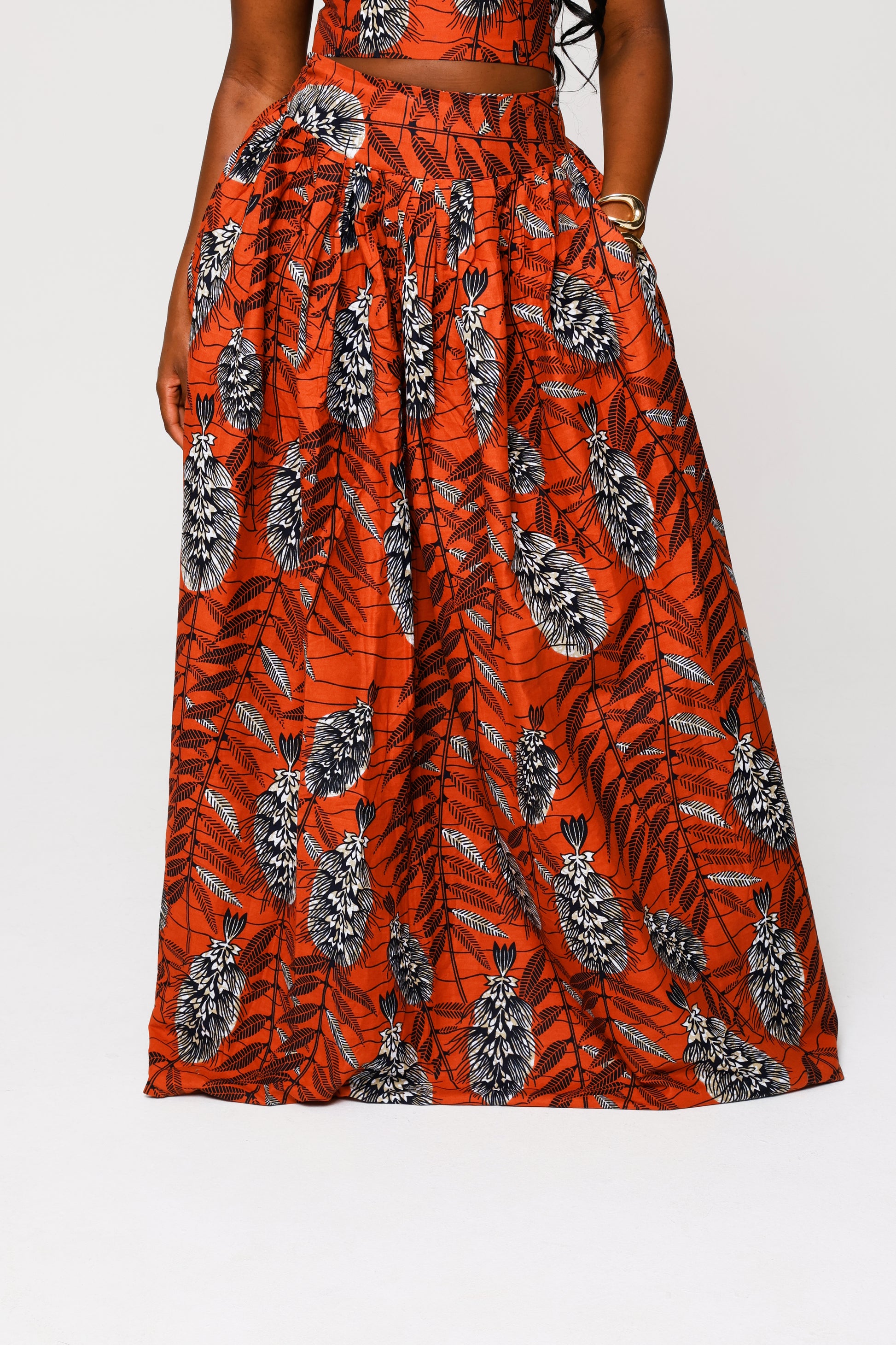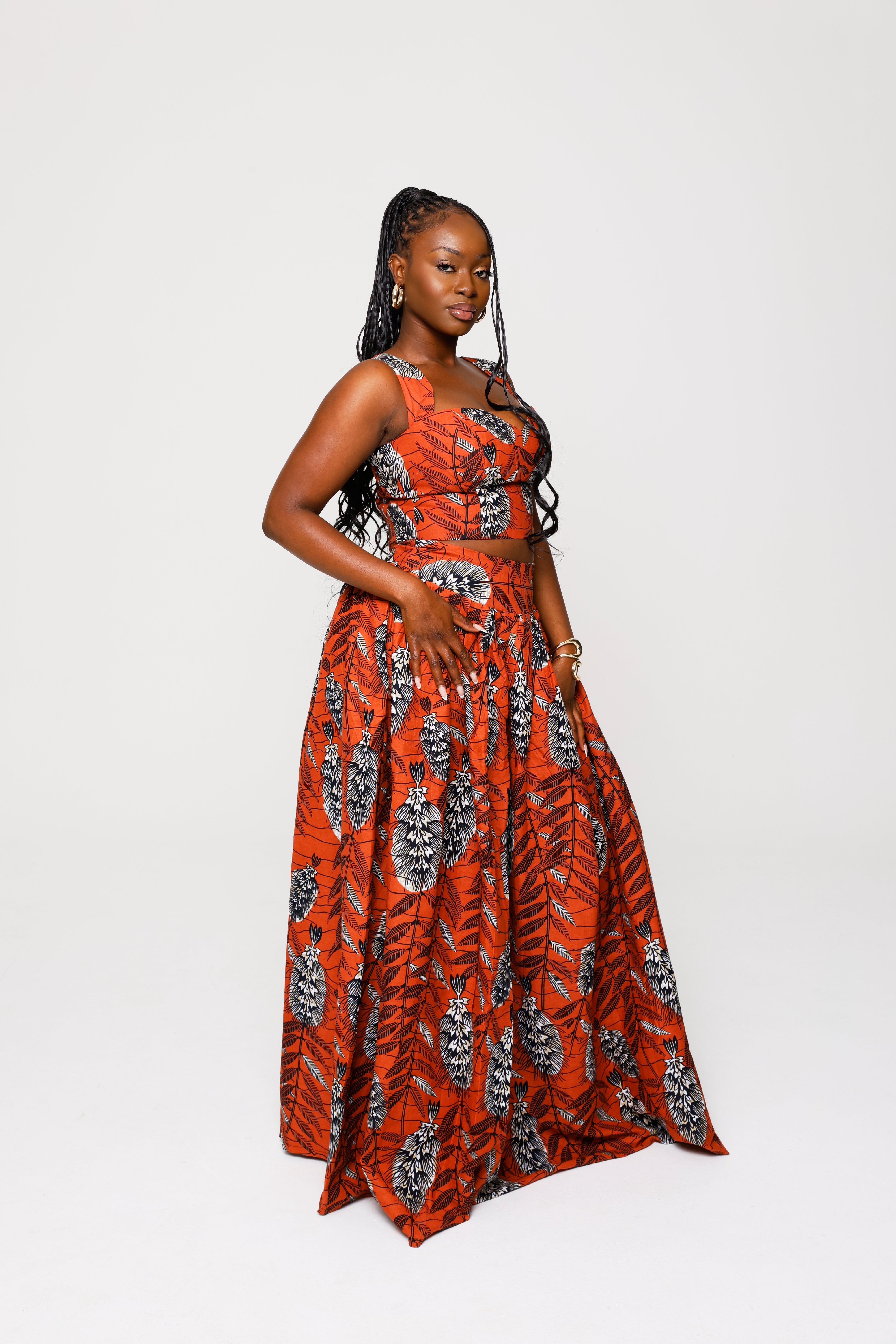 Terracotta Bloom” Ankara Crop Top & Maxi Skirt Set