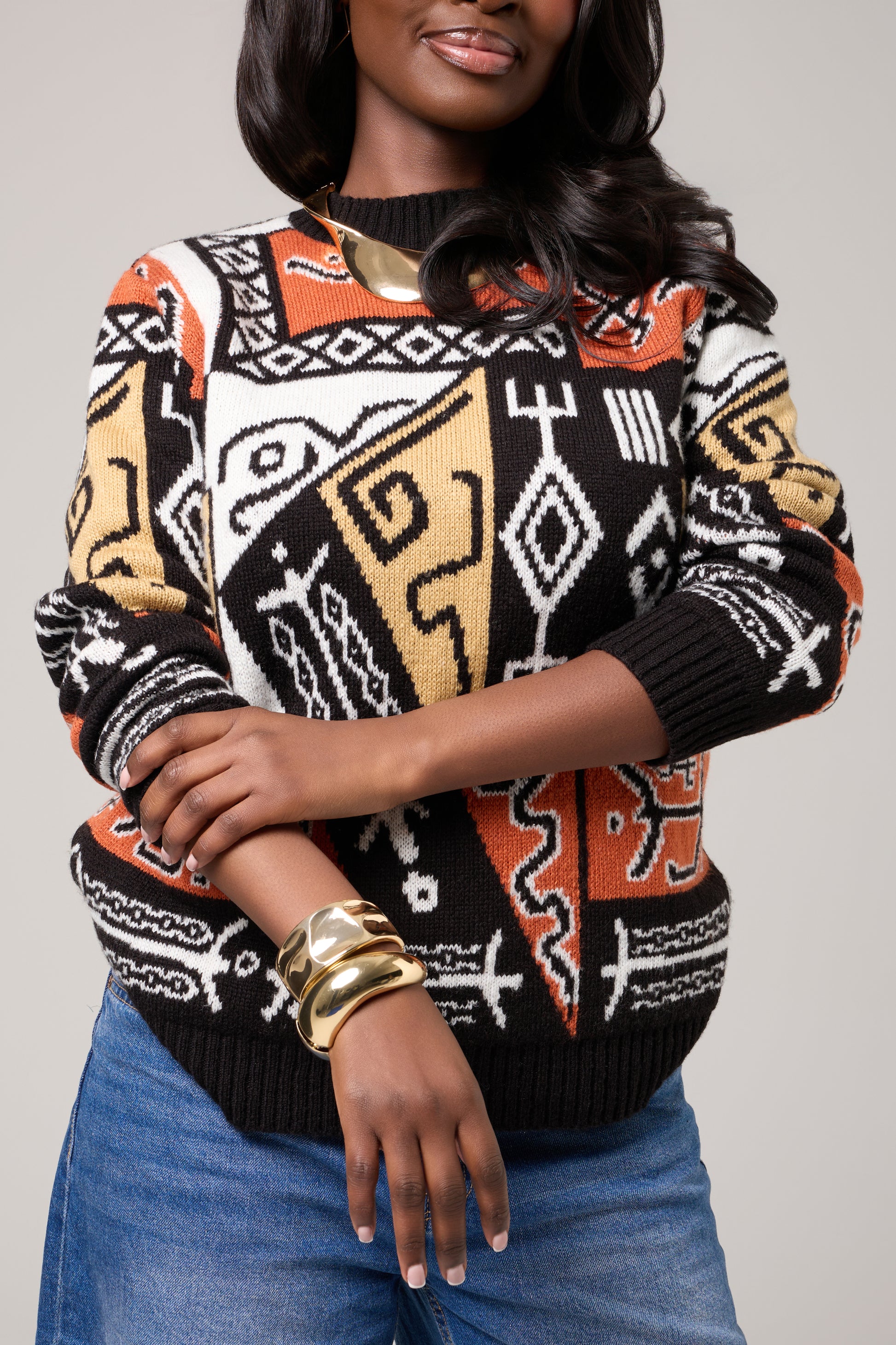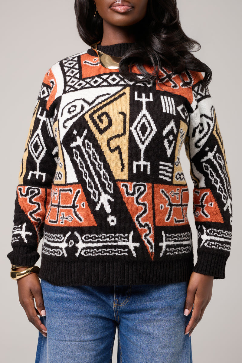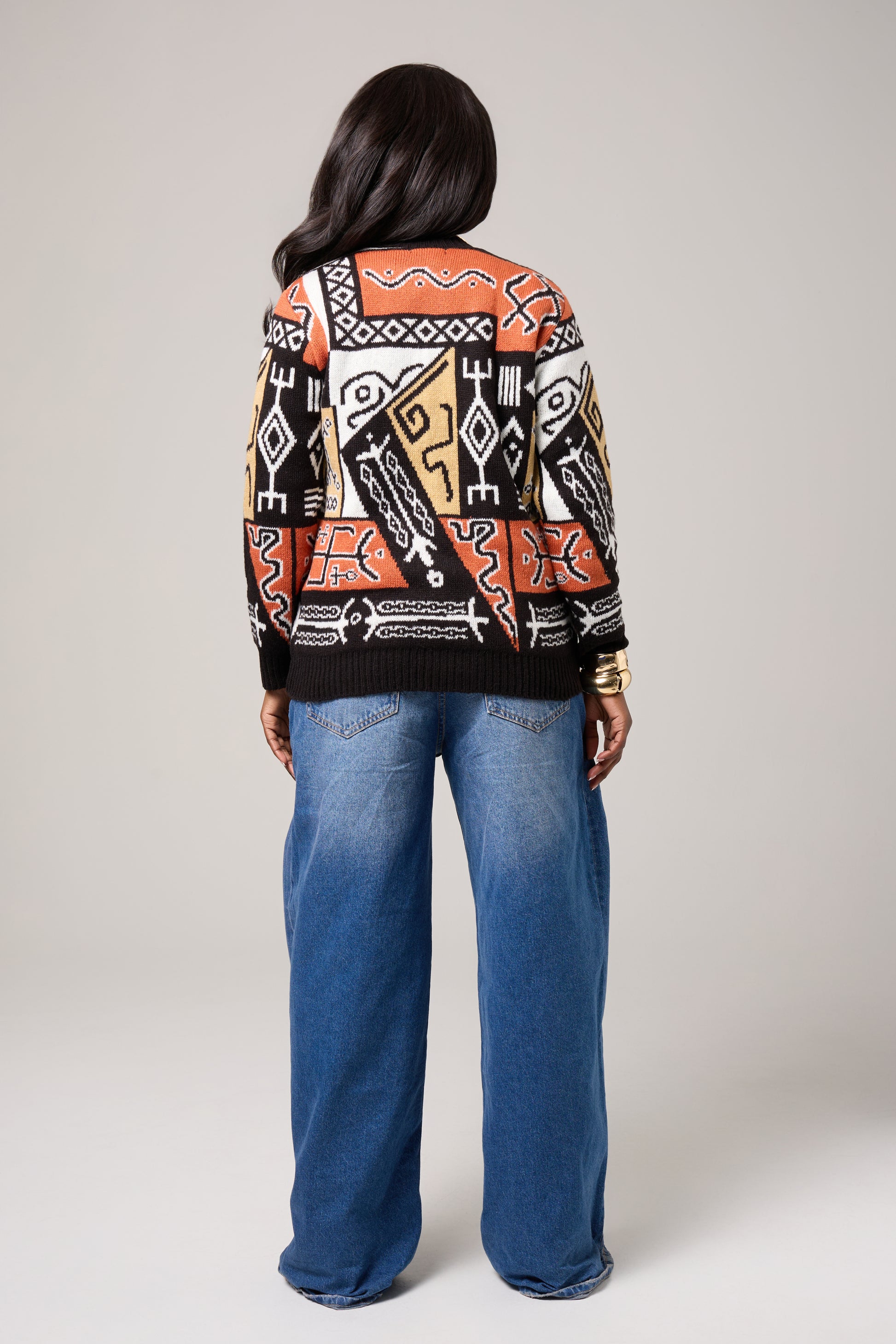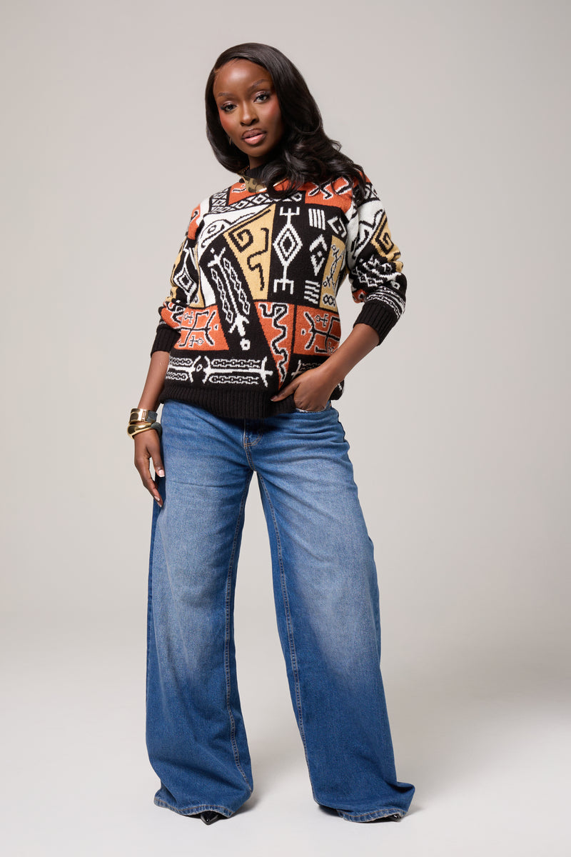 The Queen of Her Roots Jumper is a tribute to feminine power, heritage, and self‑possession. Featuring bold, symbolic patterning inspired by ancestral motifs, this piece speaks to grounding, strength, and identity carried with grace.