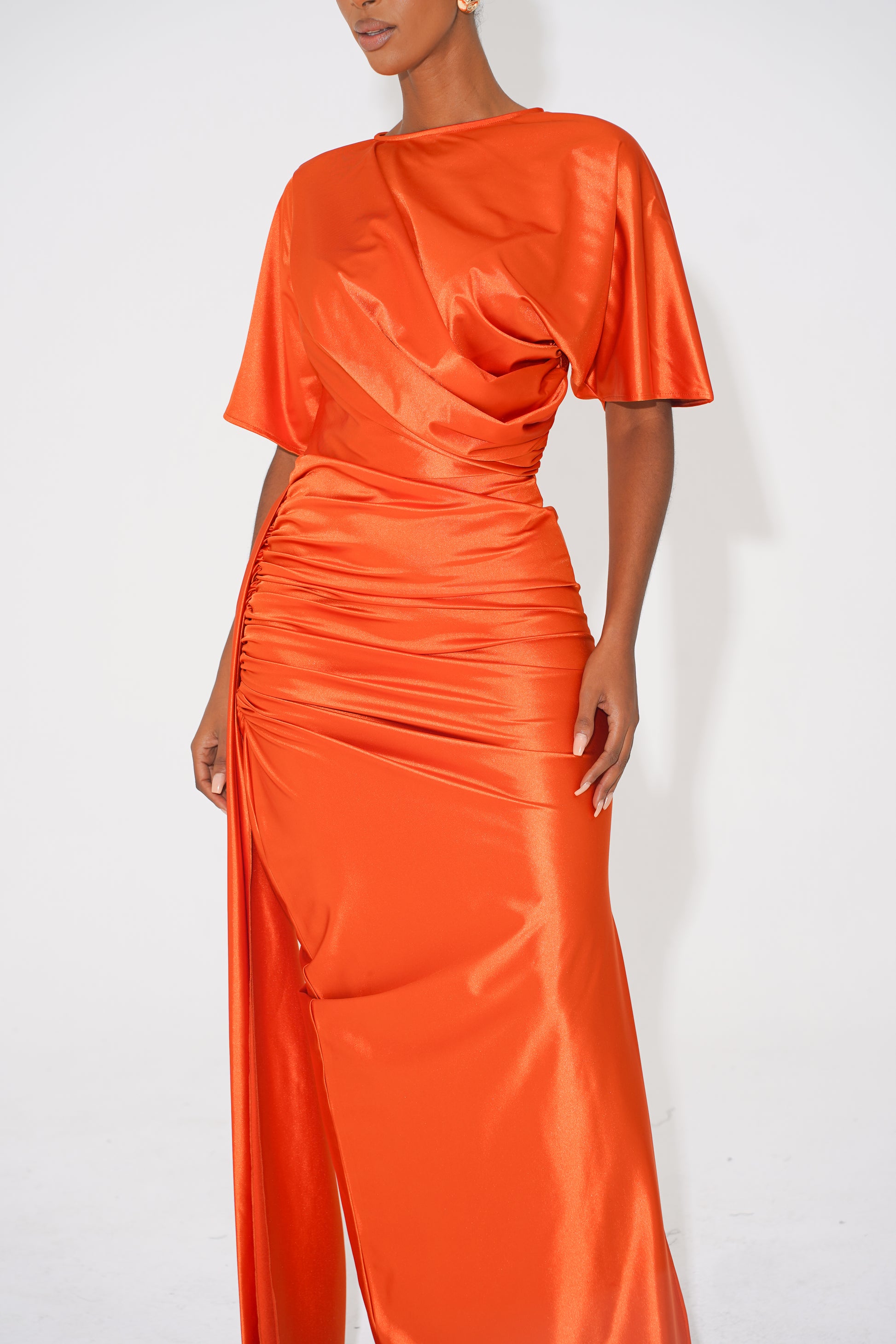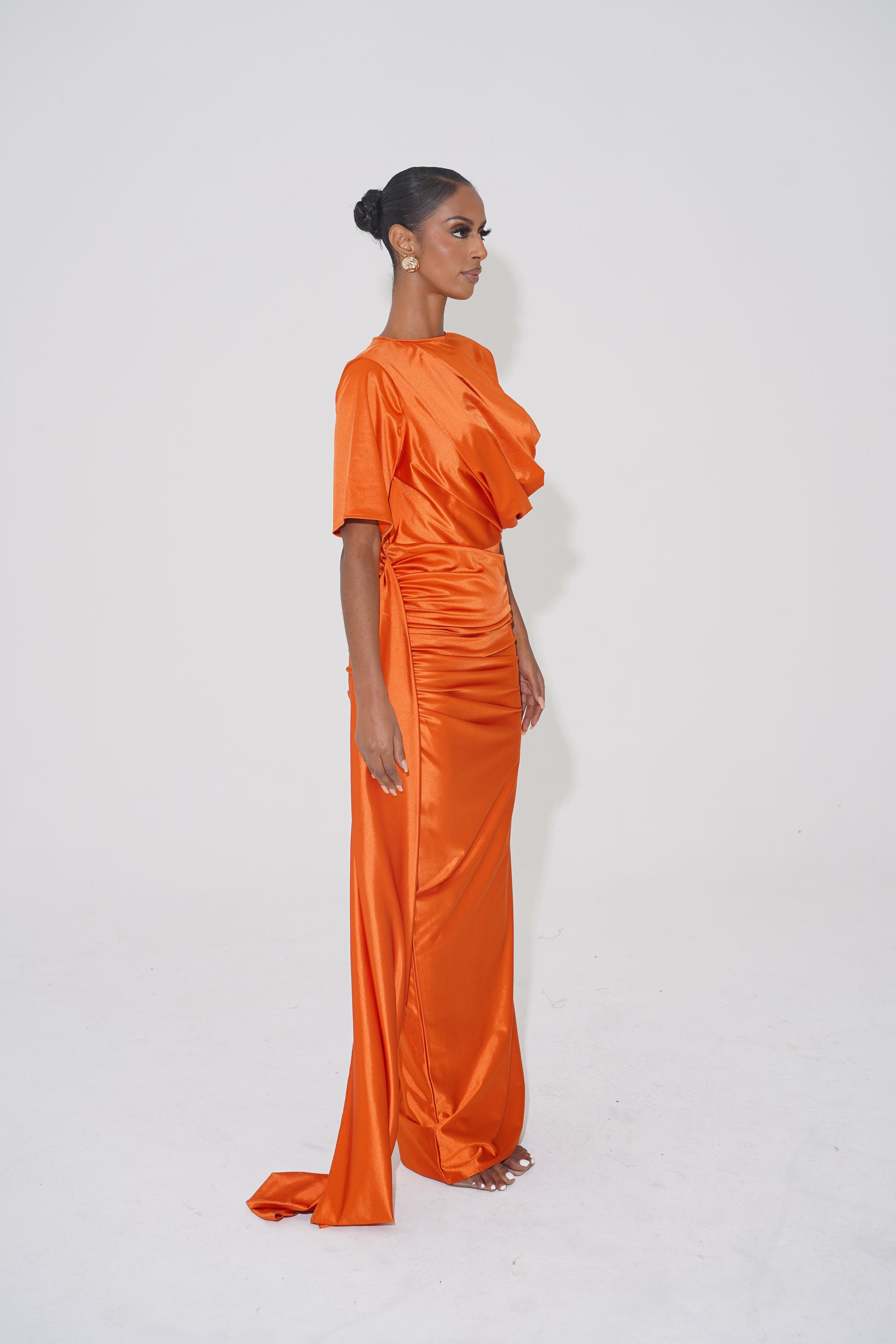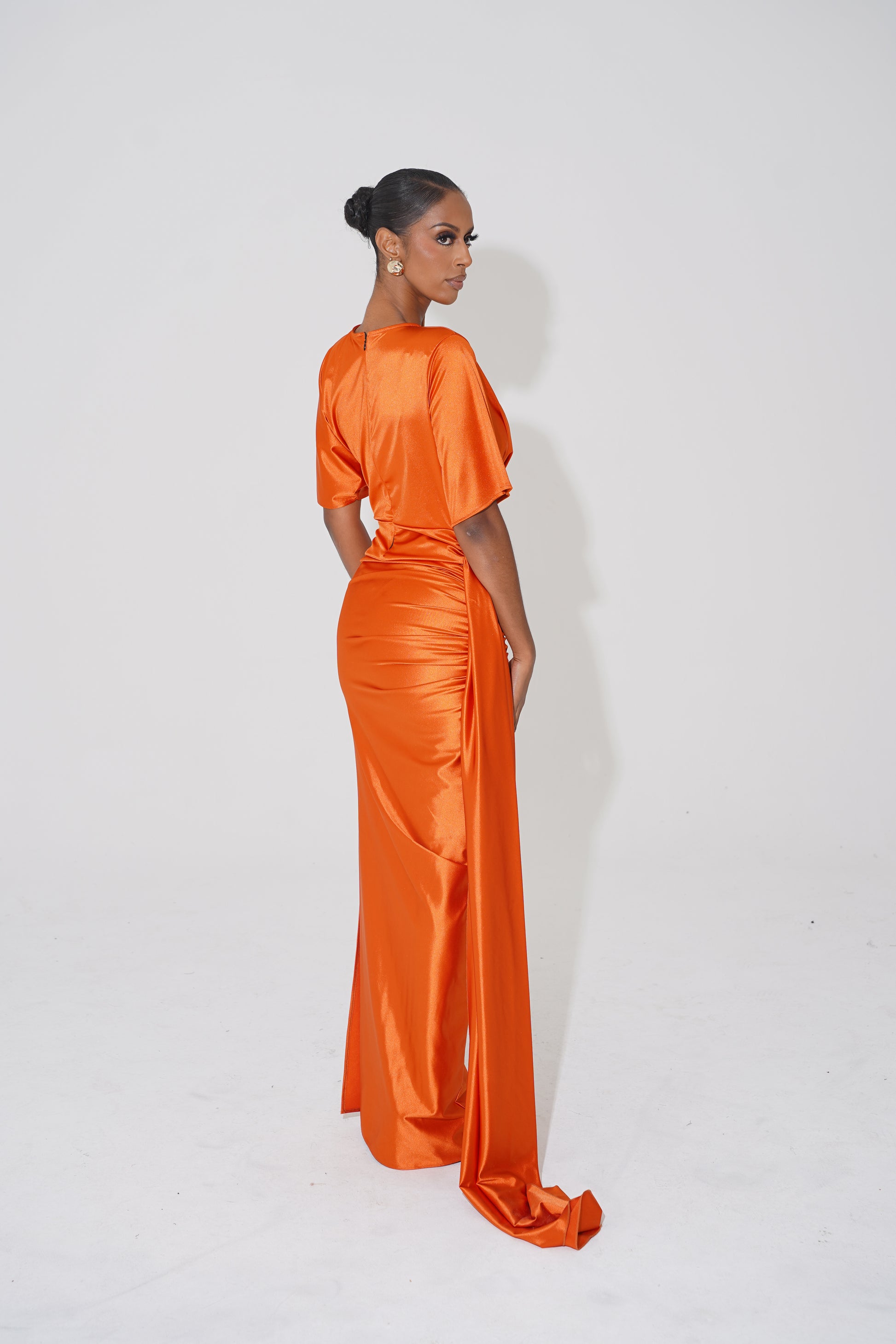 Styling Tip: Pair with classic black or nude heels to let the dress shine. Add gold or orange-toned jewelry for a coordinated and polished look. A sleek bun or soft waves will complete the outfit perfectly.