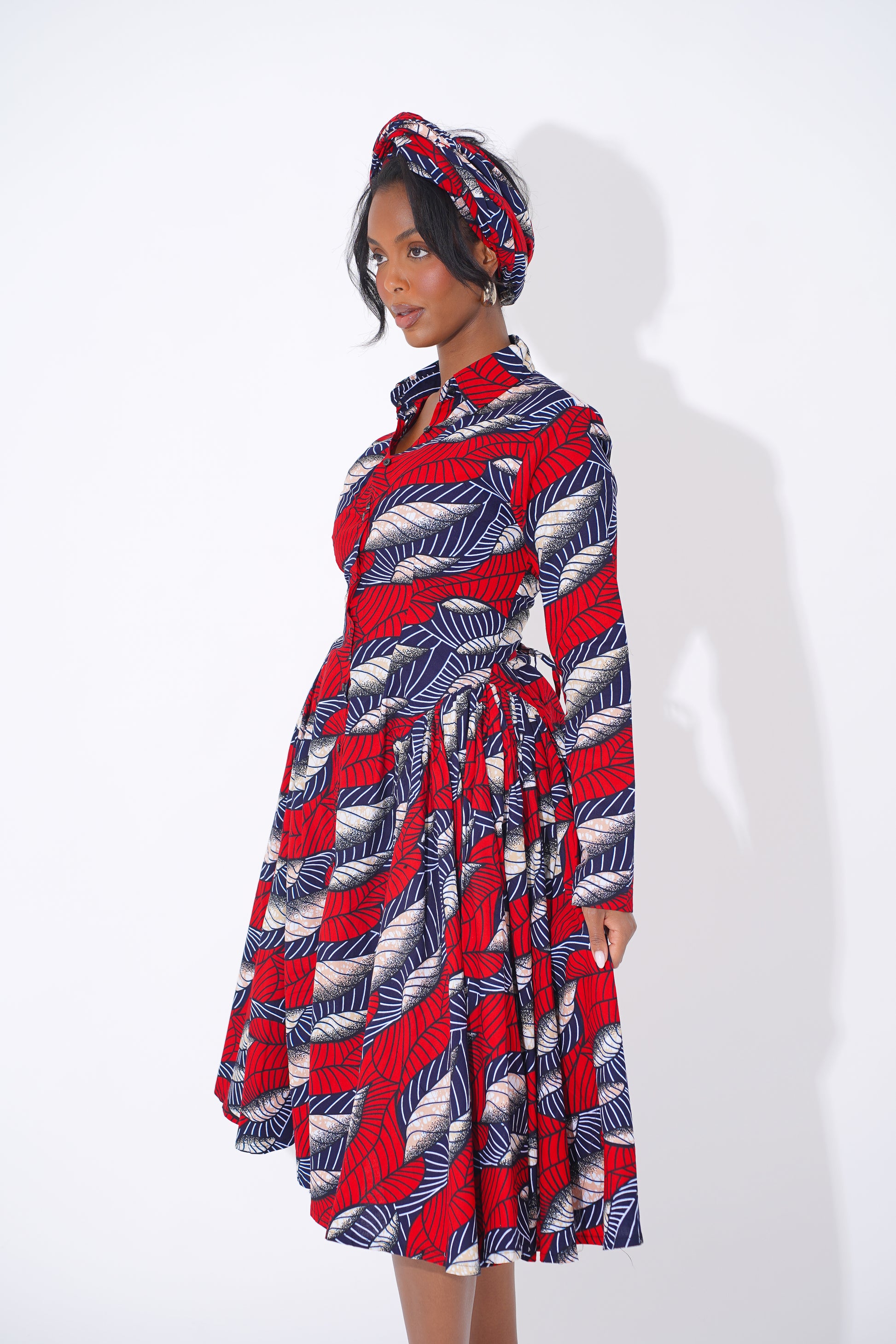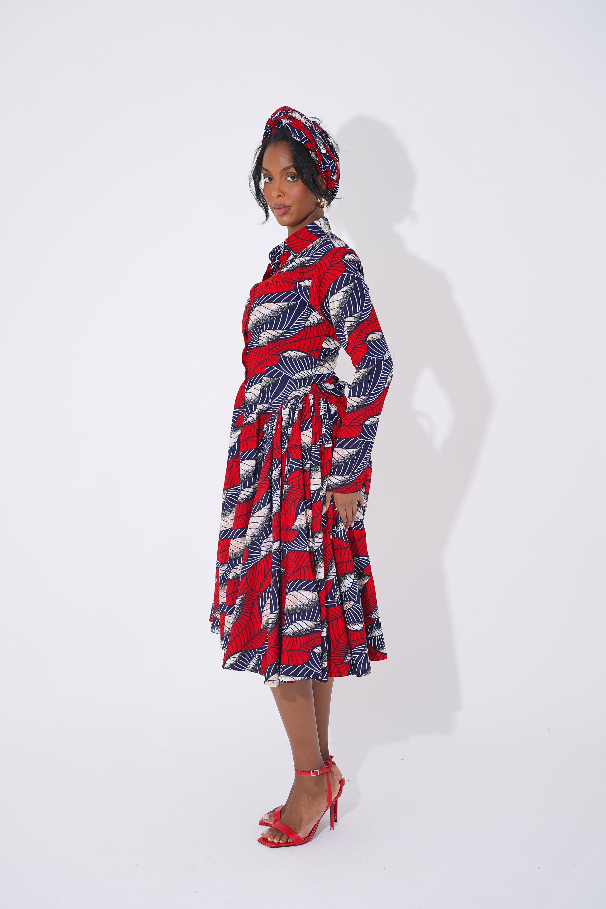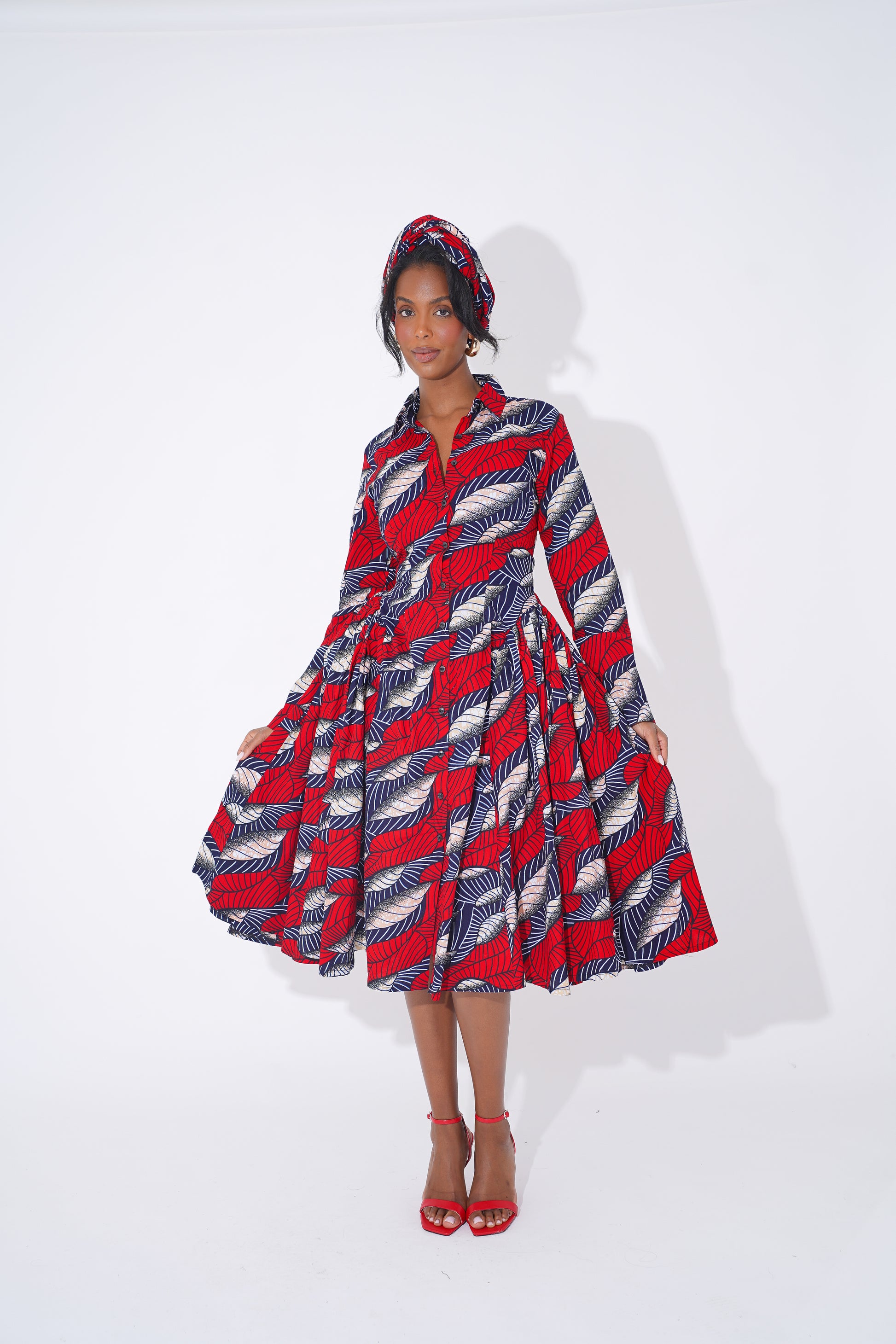 Styling Tip: Pair it with red or neutral heels to match the vibrant pattern. Style your hair up with the included headwrap for a complete Afrocentric look or down for a more relaxed vibe. Add statement earrings or a bold lip to enhance the elegance.