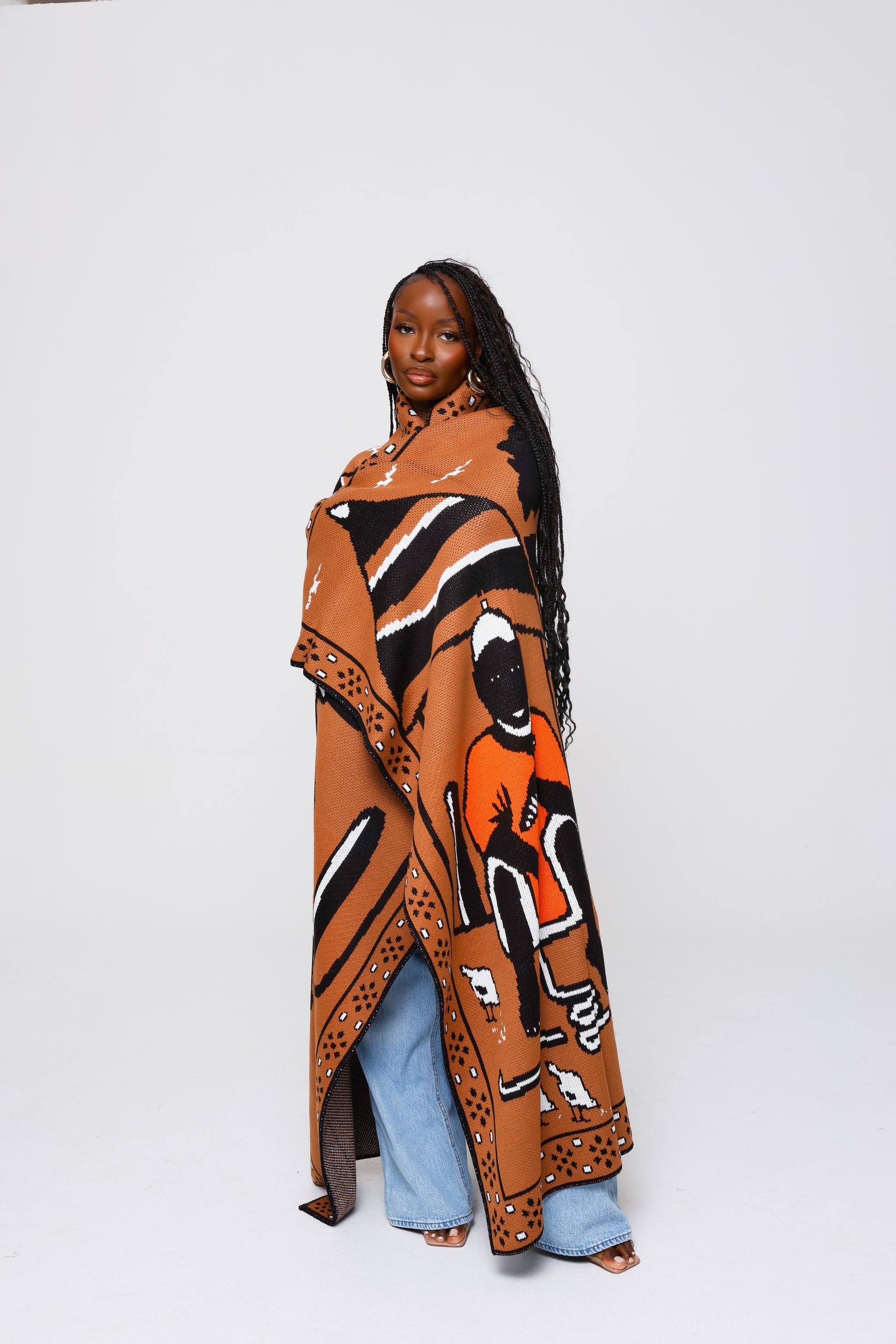 This vibrant knit blanket is a beautiful fusion of art and craftsmanship, designed to bring warmth and culture to your home. Featuring an intricate, bold African-inspired pattern, the blanket depicts traditional scenes of everyday life, with vivid figures and earthy tones that evoke a sense of heritage and storytelling. Crafted from soft, high-quality knit fabric, this blanket is perfect for cozying up on chilly evenings or adding a unique touch to your living space. Its durable construction ensures long-lasting comfort, making it an ideal addition to any home décor. Whether you're looking to relax or showcase a piece of cultural art, this knit blanket is sure to be a striking and functional addition.
