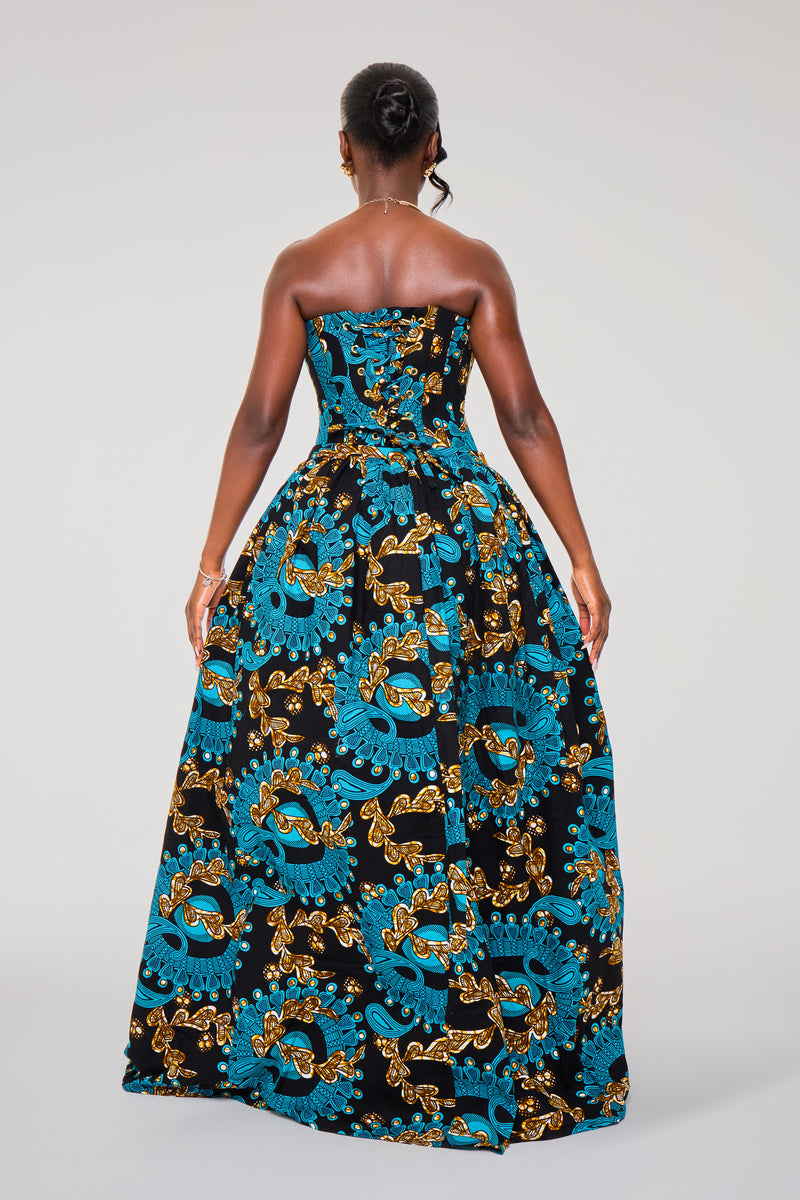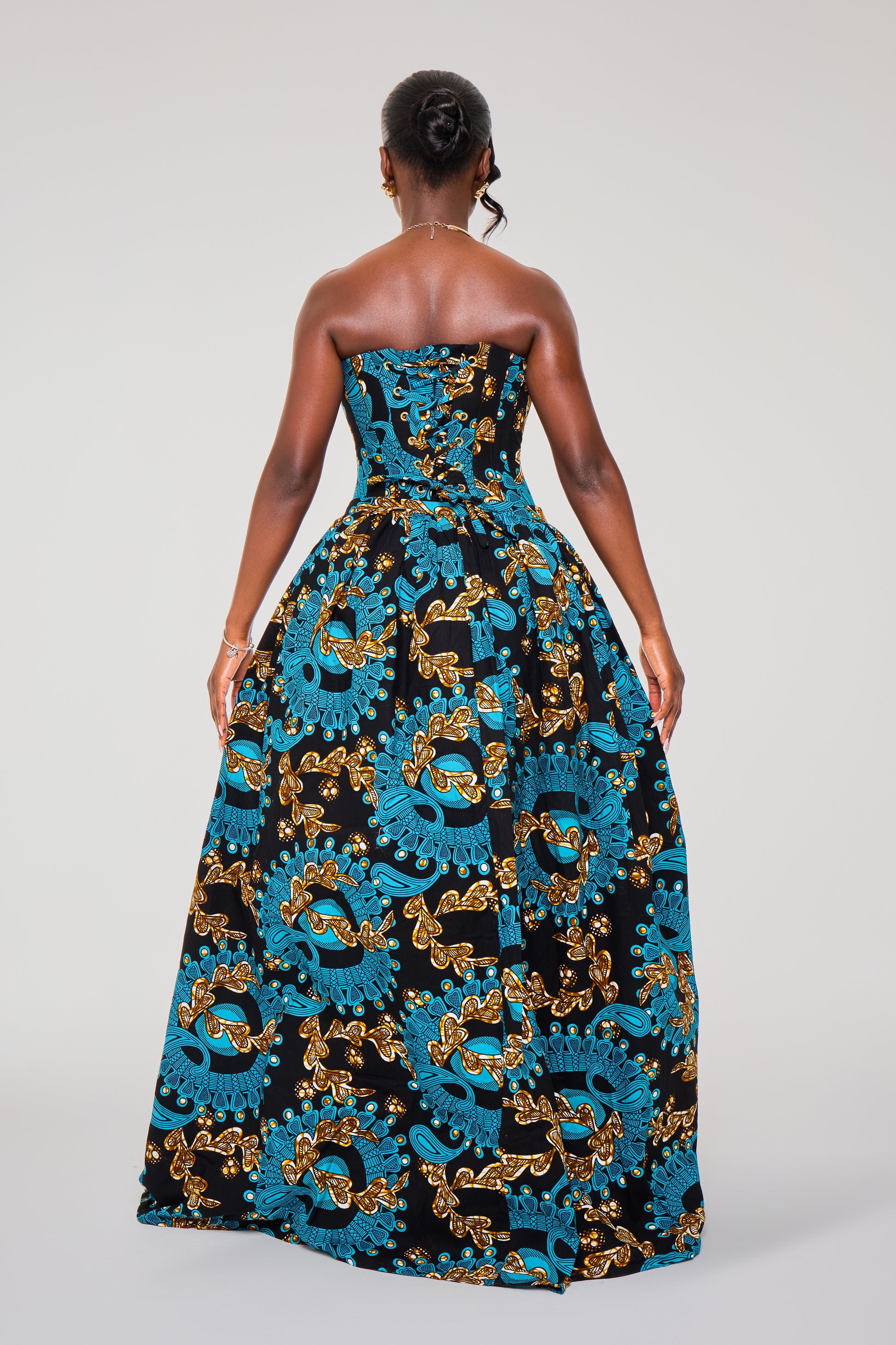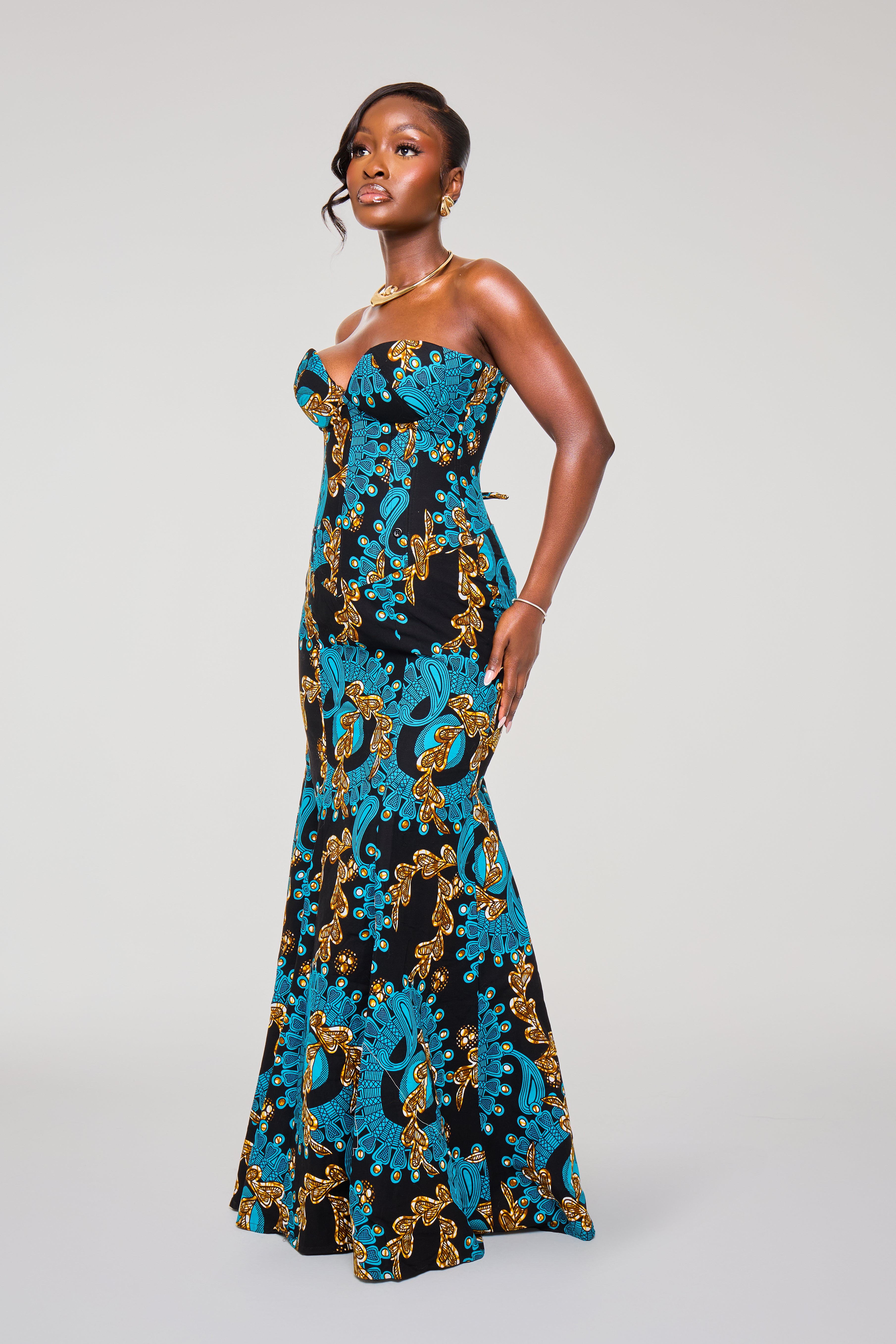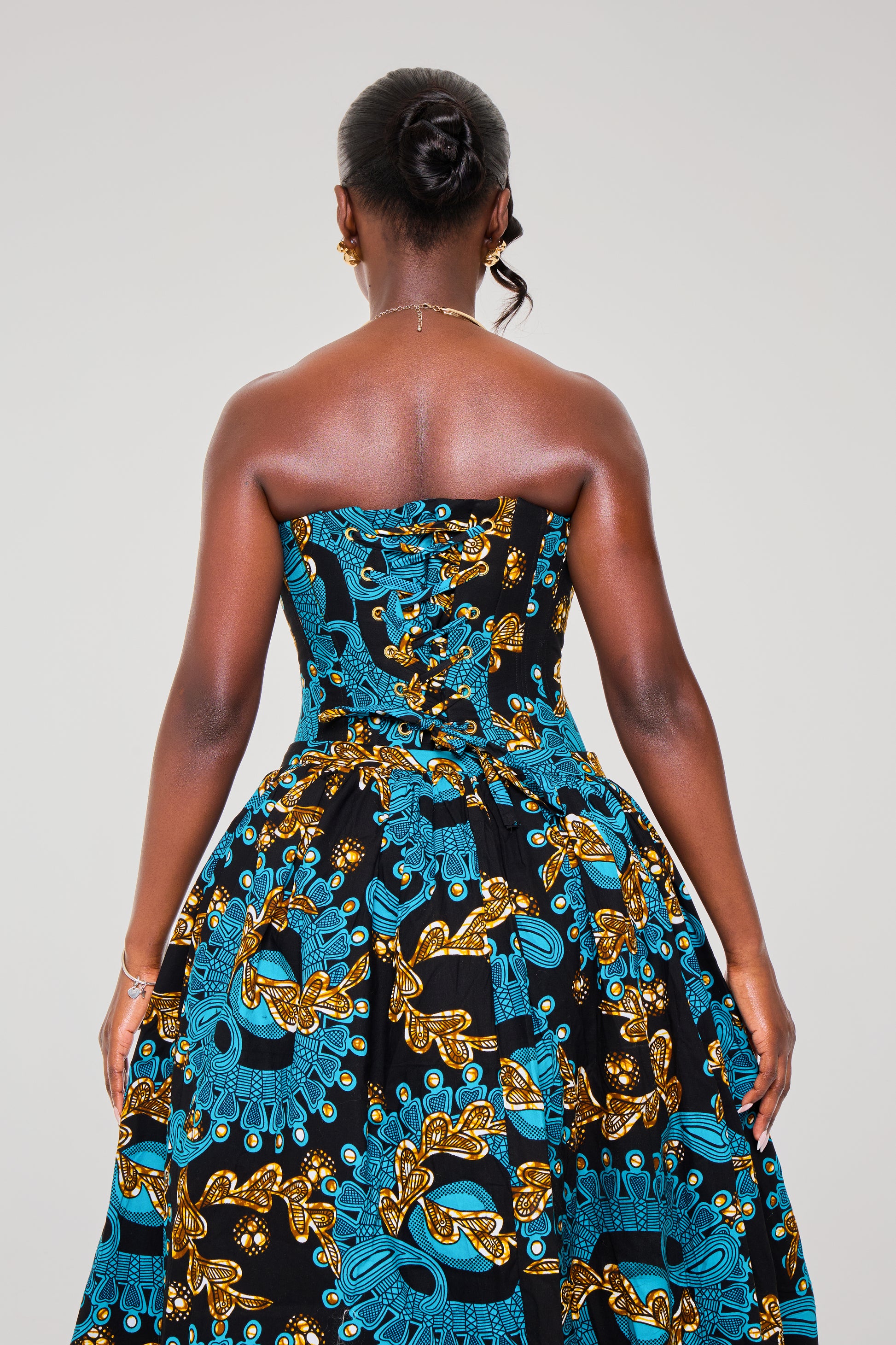 The Chimamanda Dress is a strapless convertible maxi crafted to sculpt, flatter, and flow with you, this strapless corset gown is made from premium Ankara with a bold print that instantly commands attention. The structured bodice snatches the waist beautifully, while the detachable maxi flare lets you switch up your style in seconds.