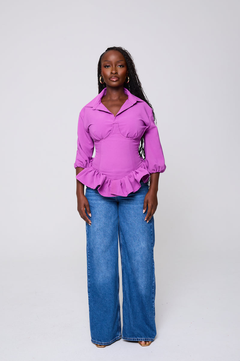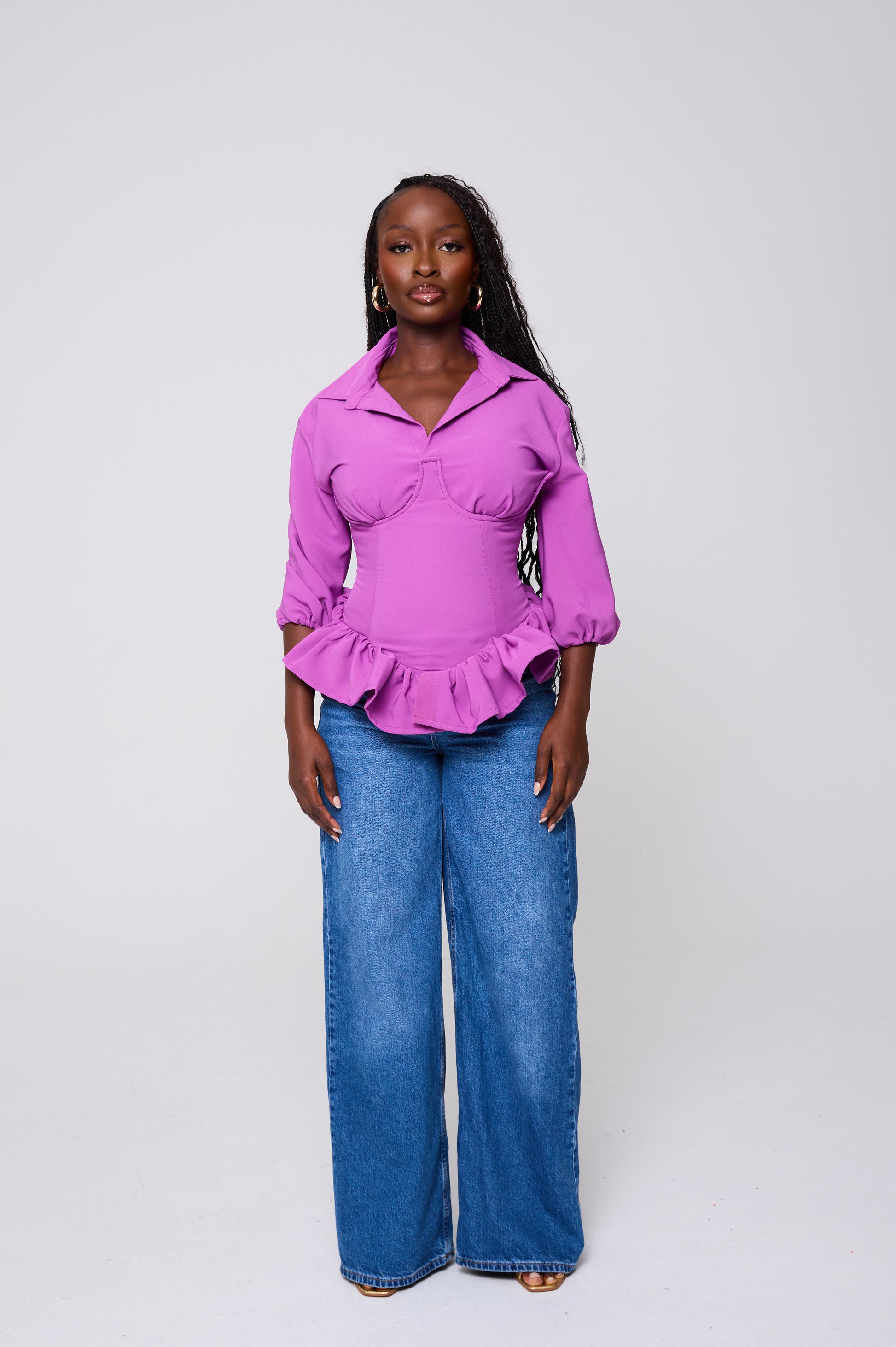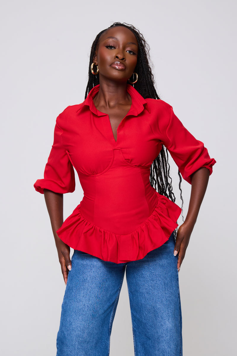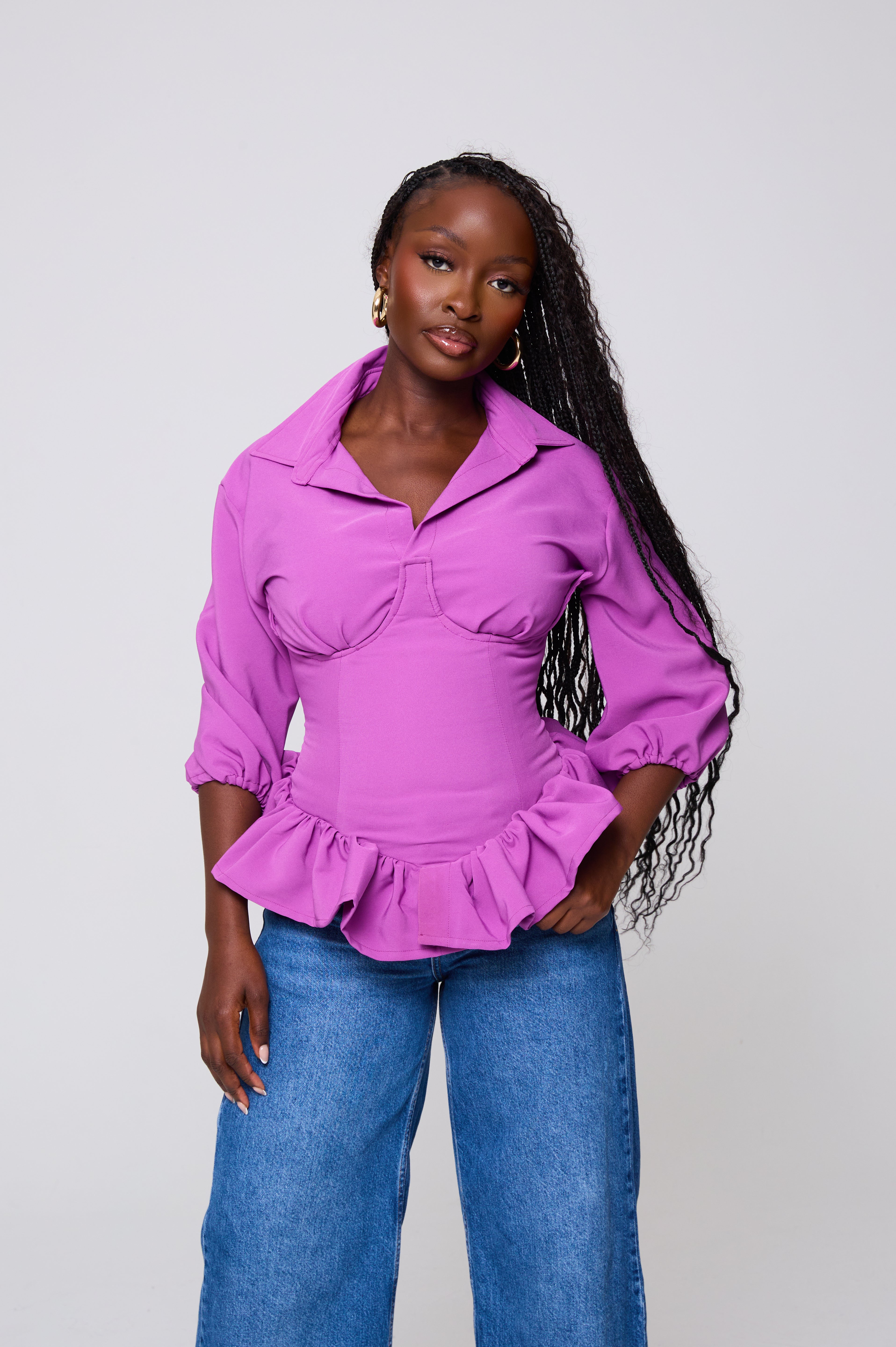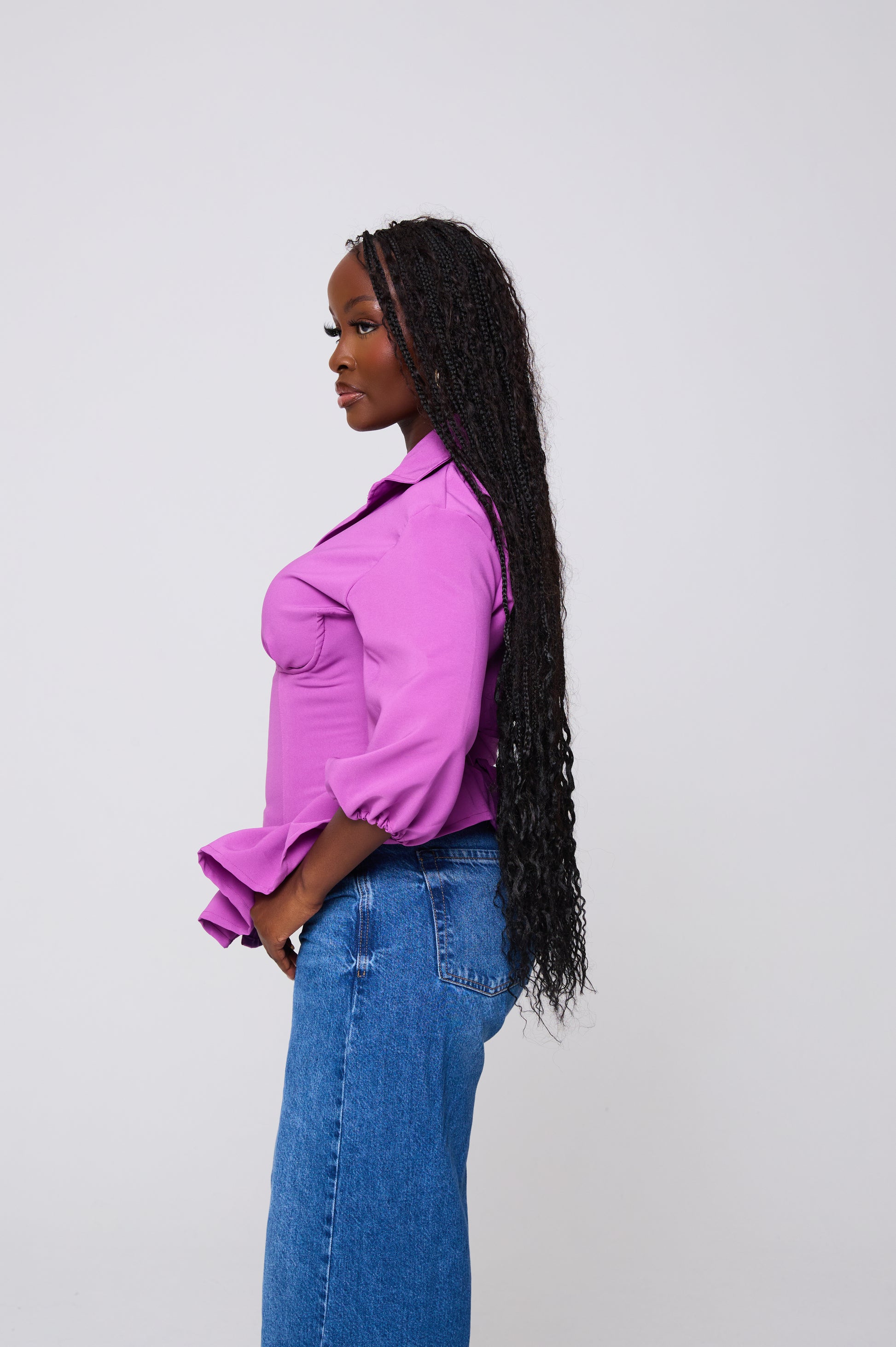 Turn heads in this structured yet feminine shirt that effortlessly combines sophistication and edge.
