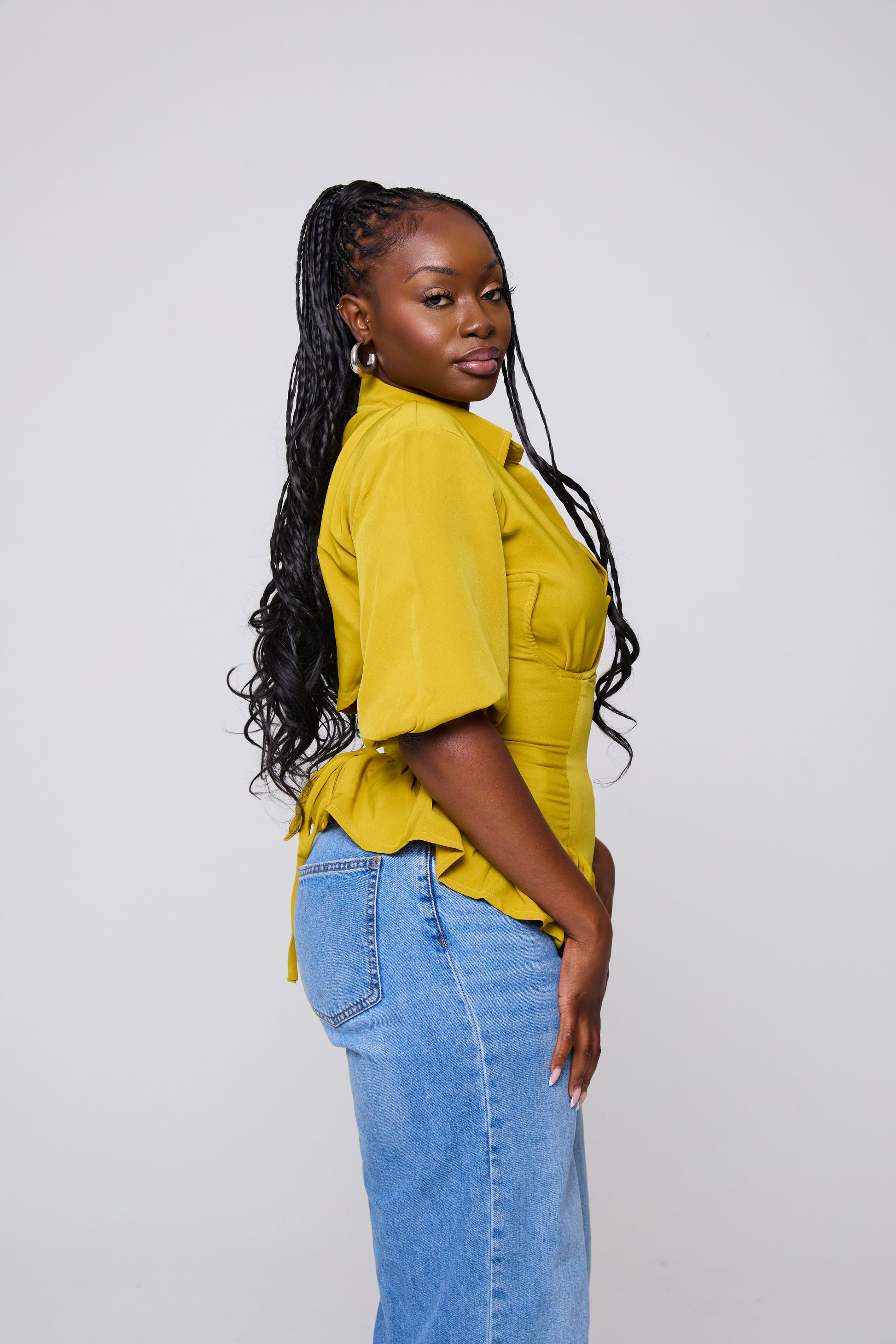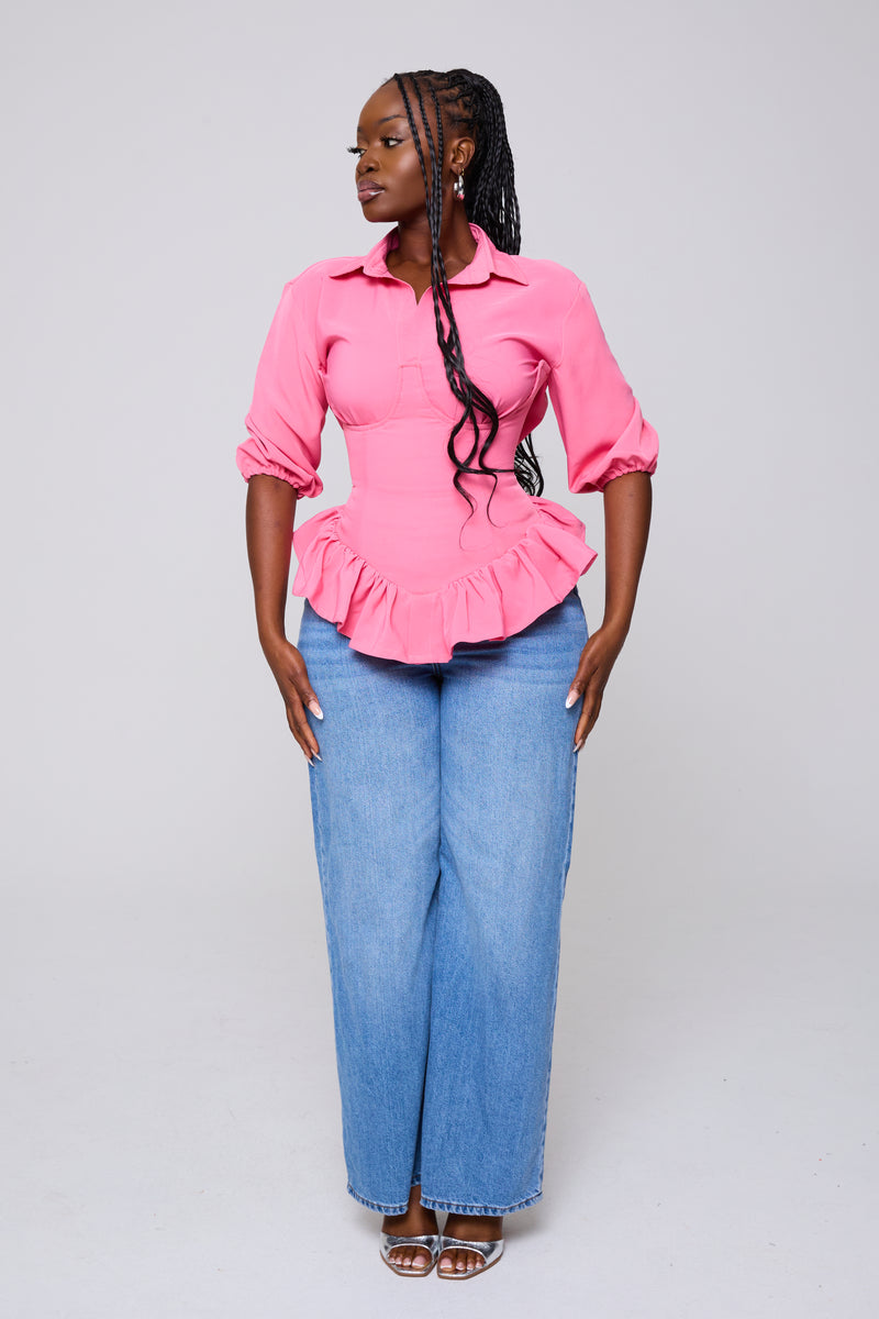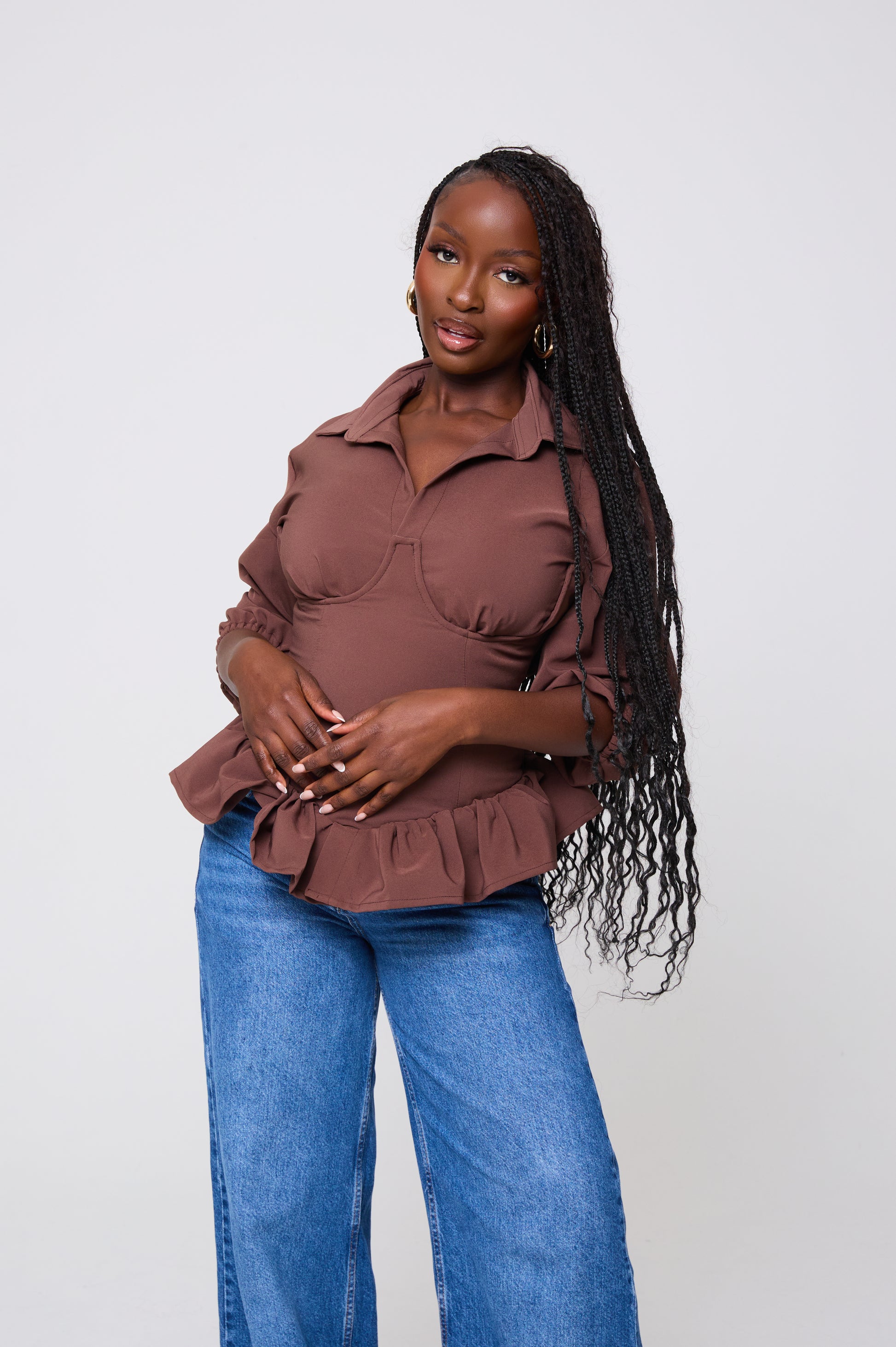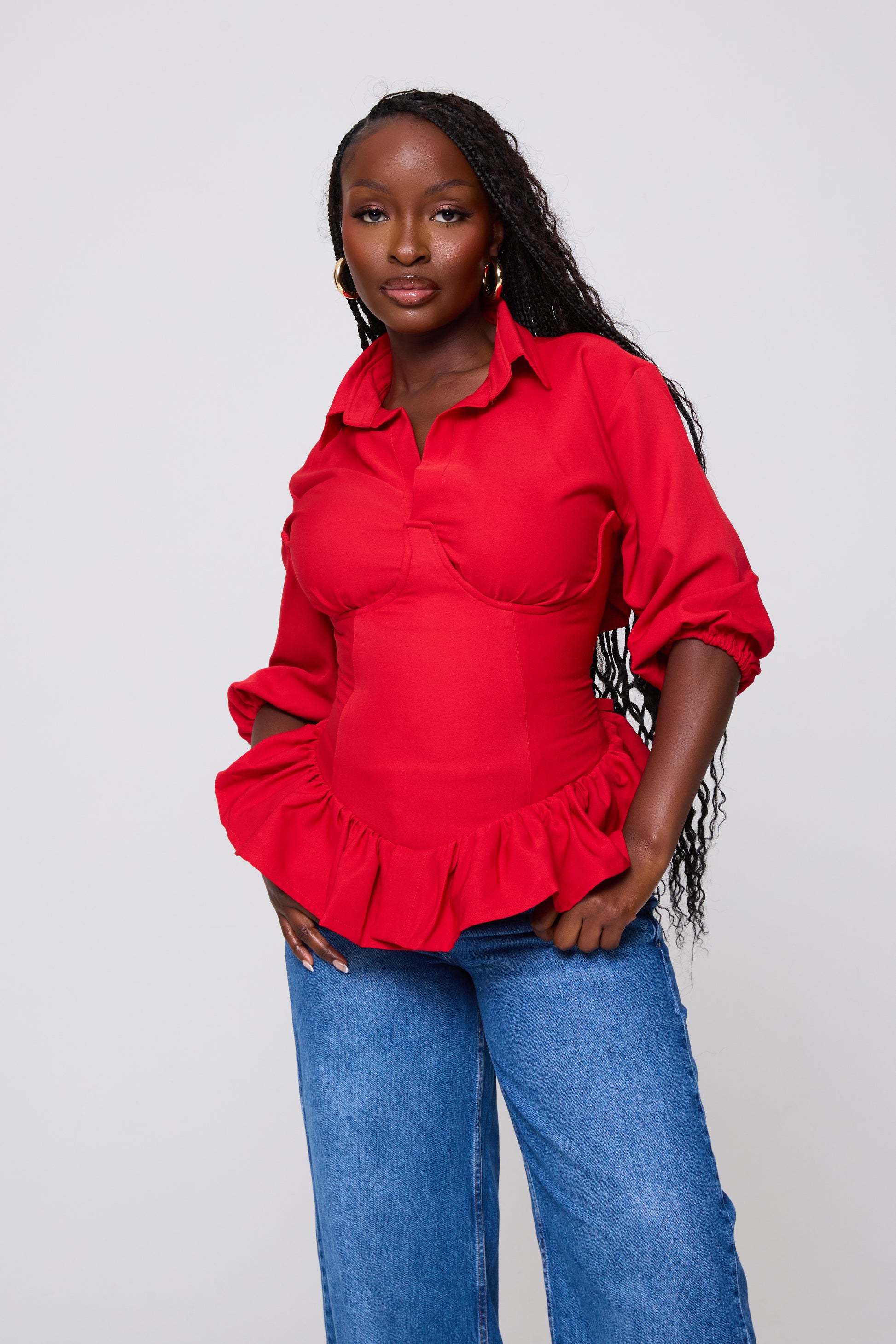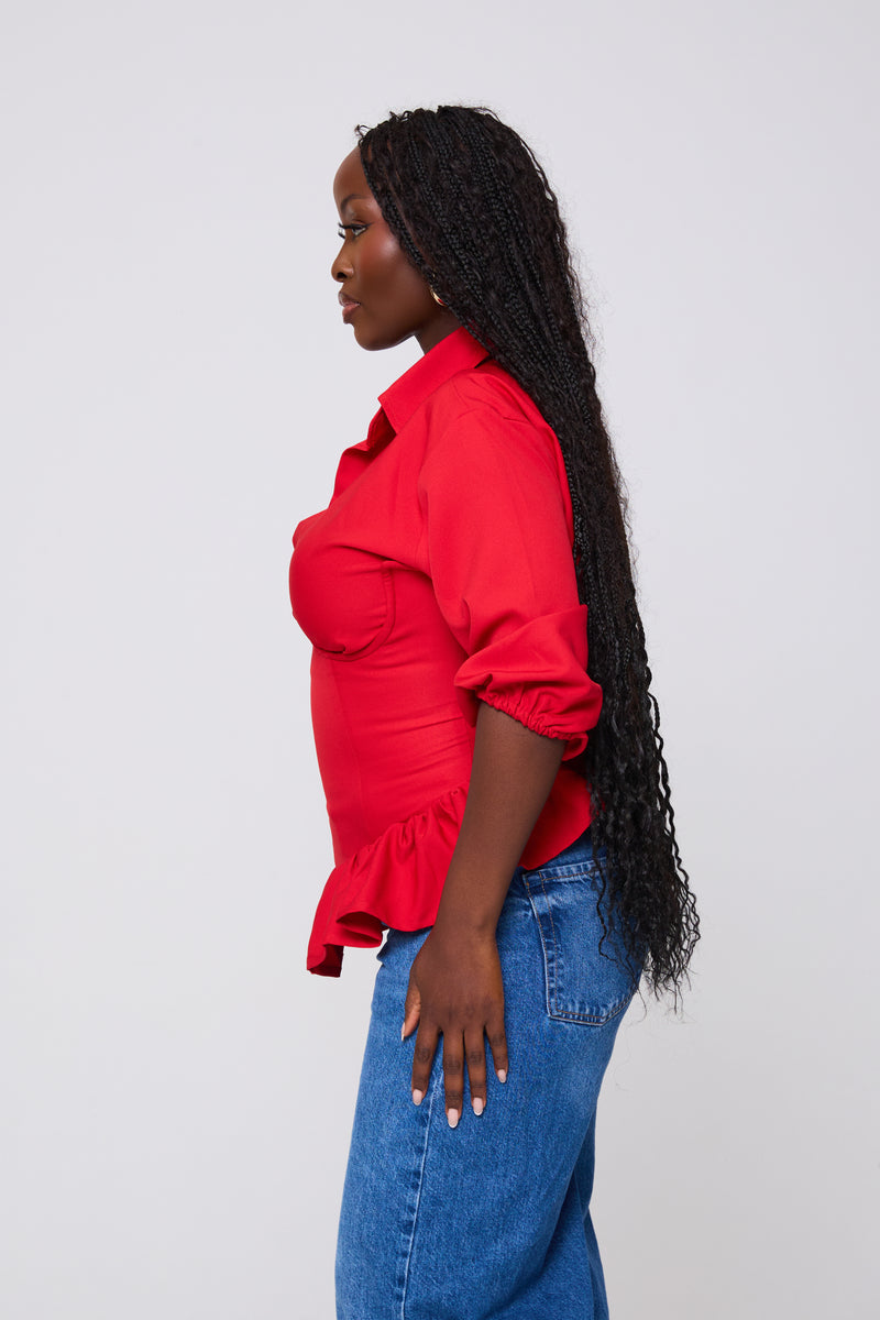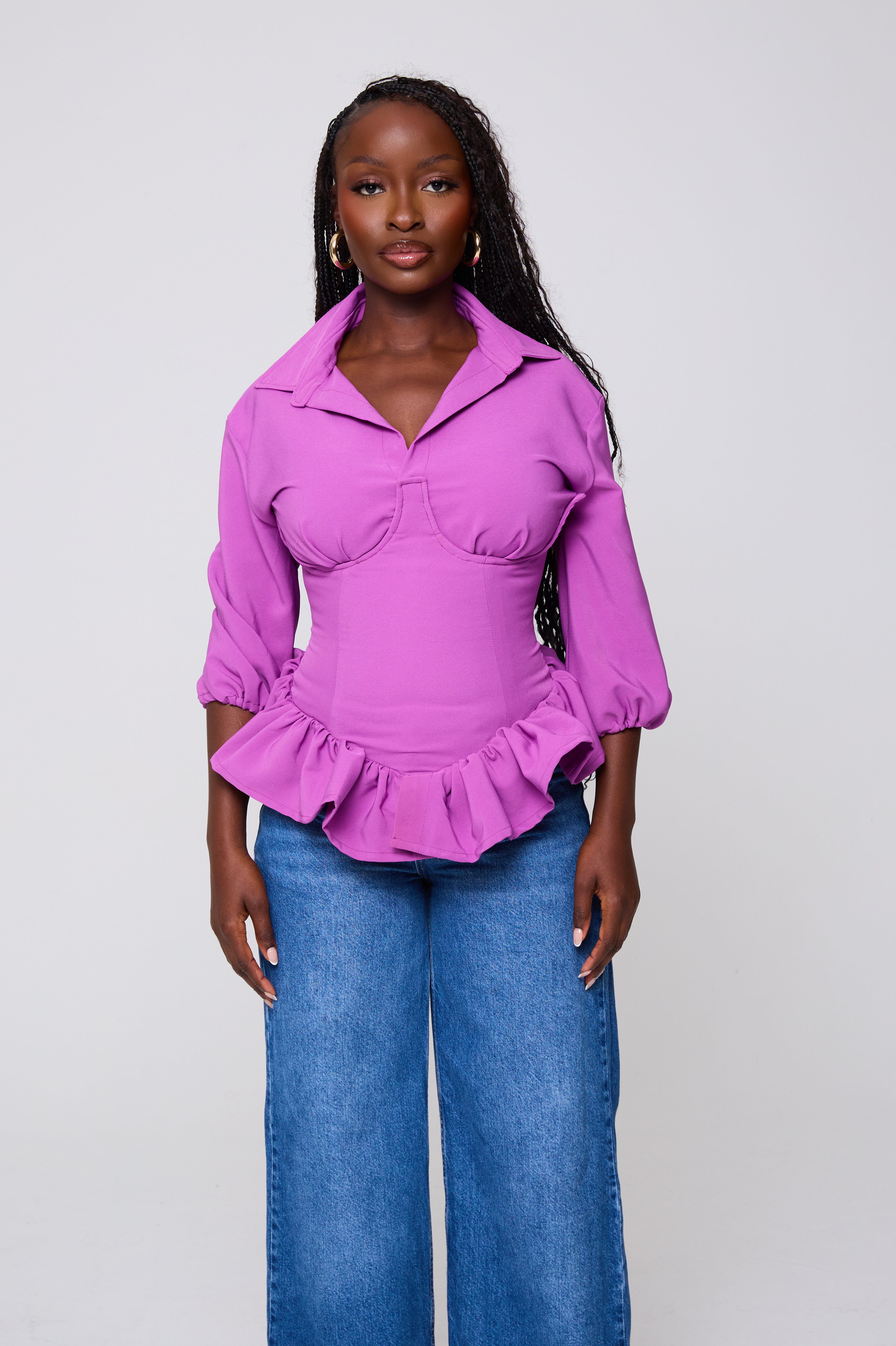 Turn heads in this structured yet feminine shirt that effortlessly combines sophistication and edge.