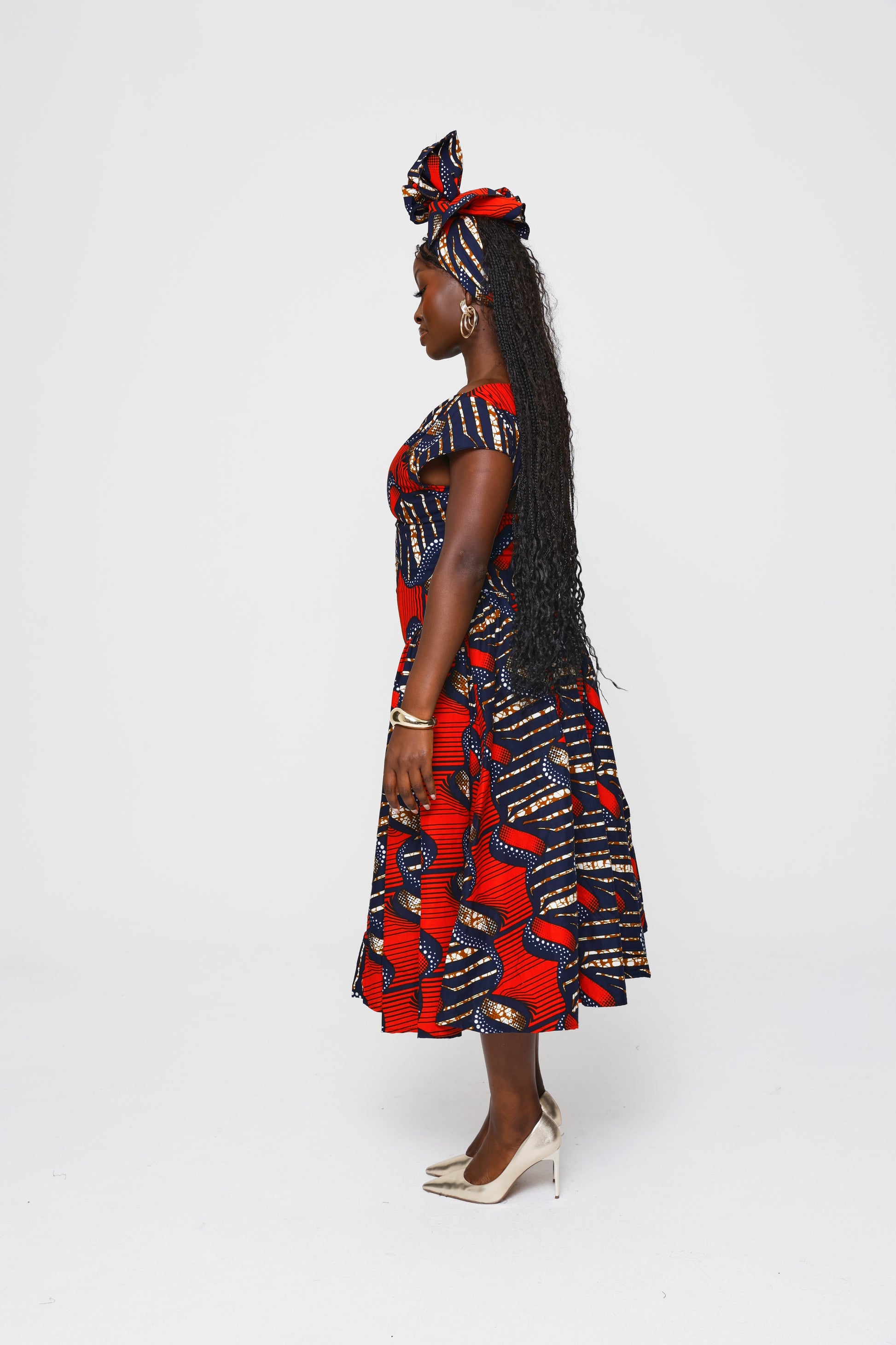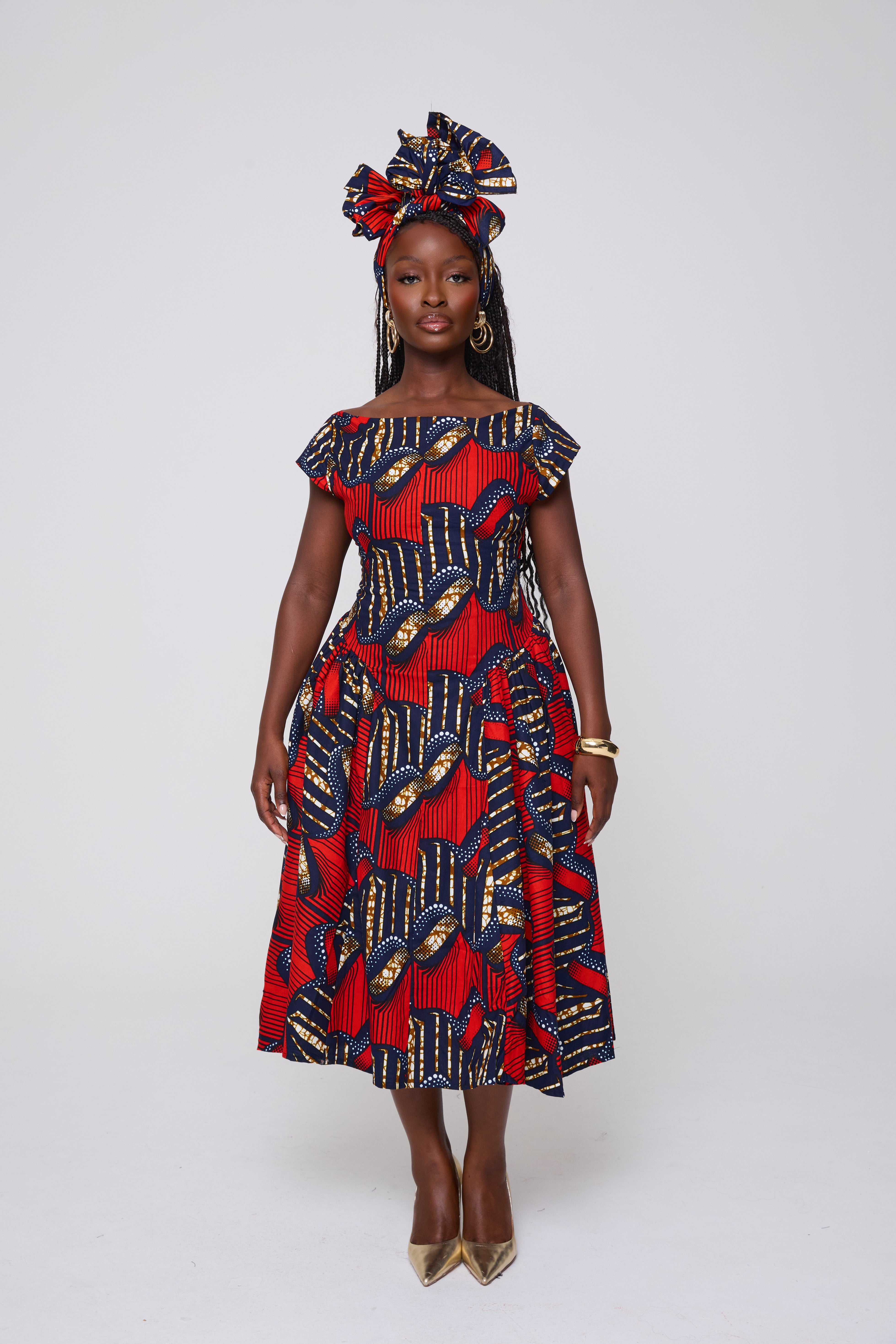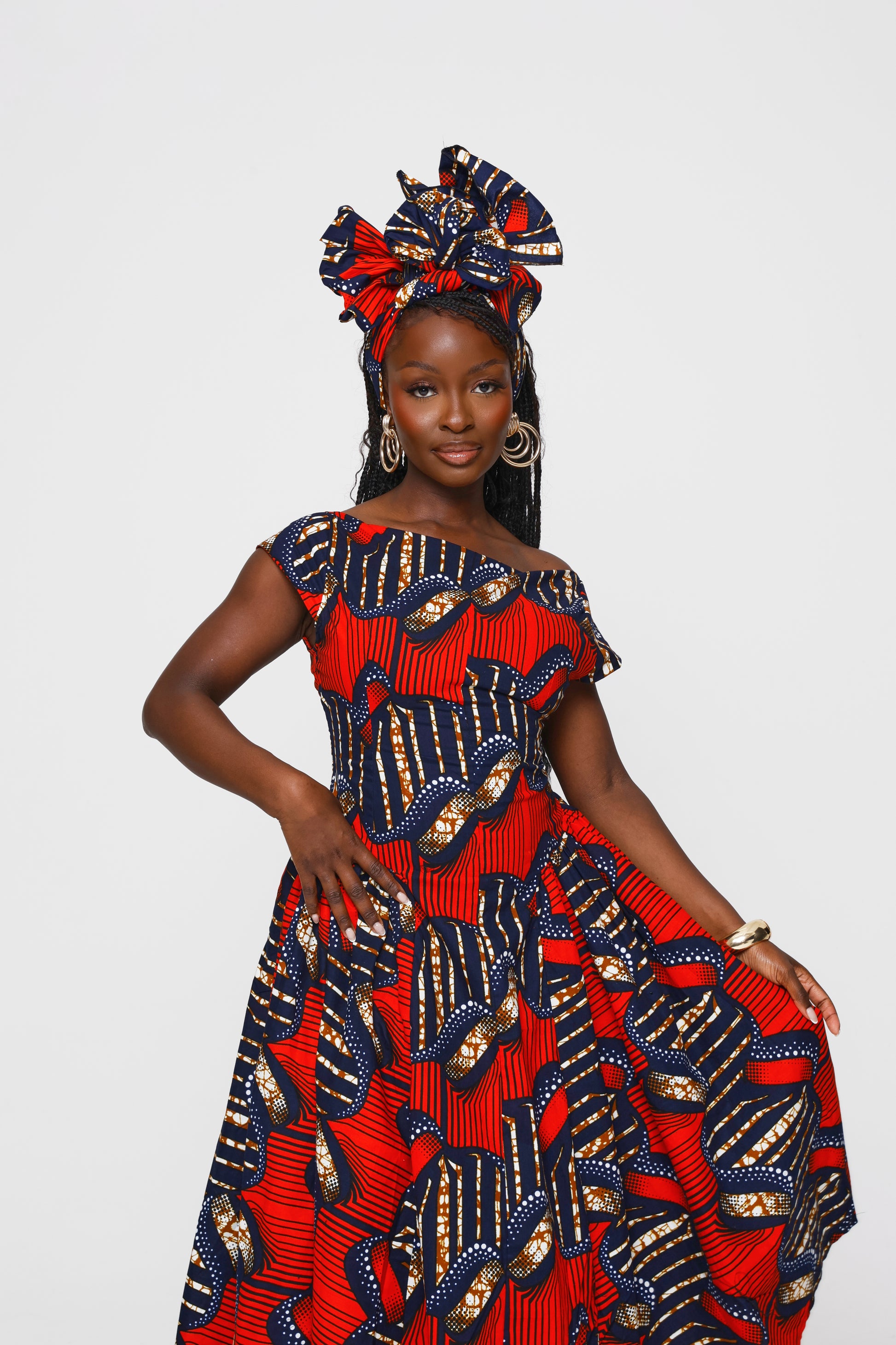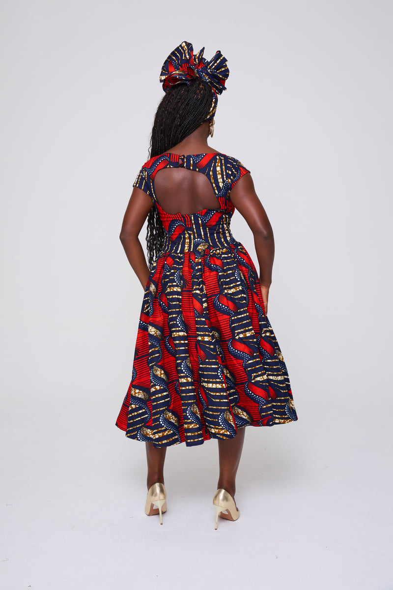 The Halima Dress blends elegance with bold detail. Its open back design and lace-up finish bring a modern twist to a timeless silhouette. Ideal for weddings, parties, and cultural celebrations.