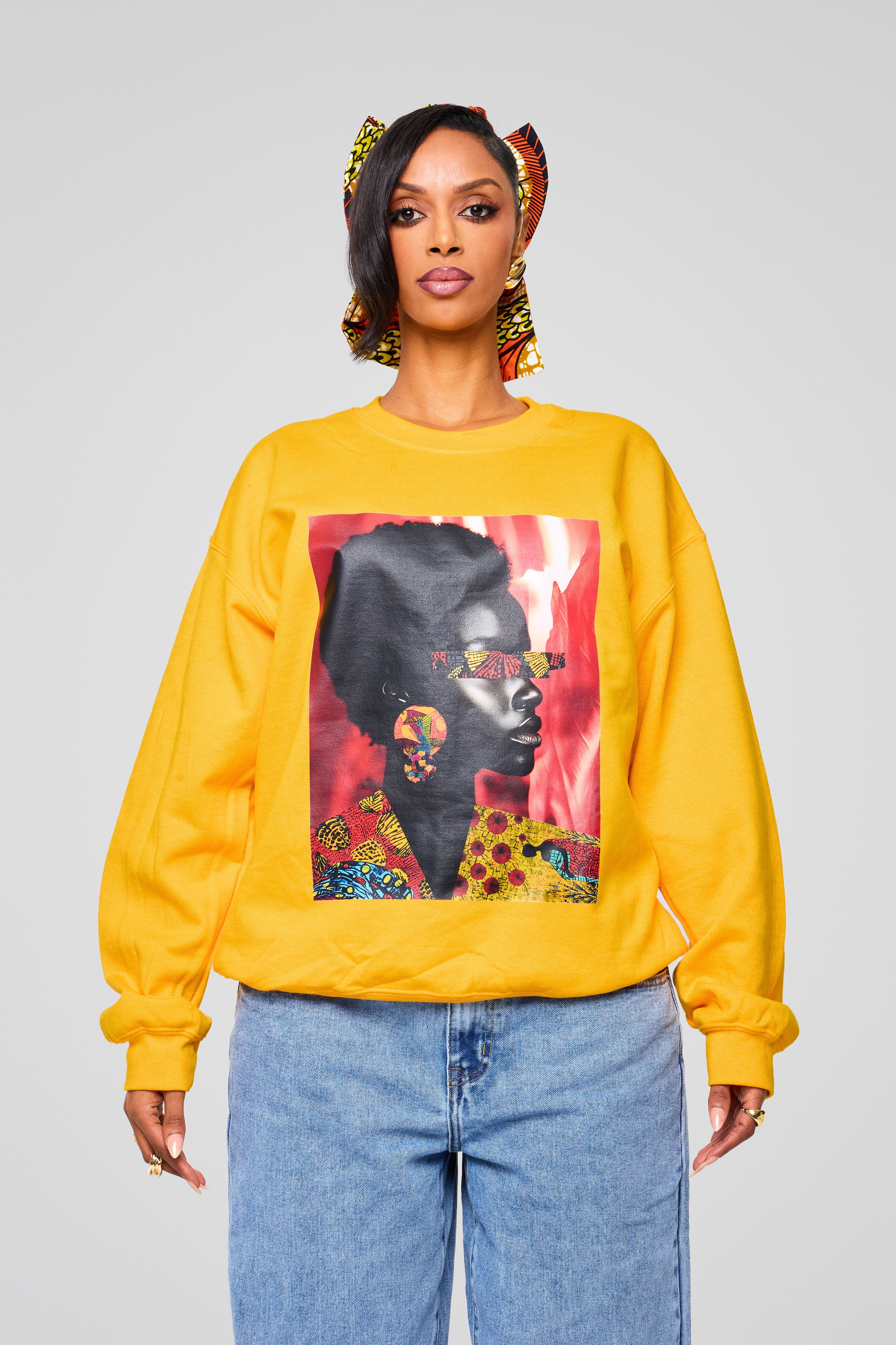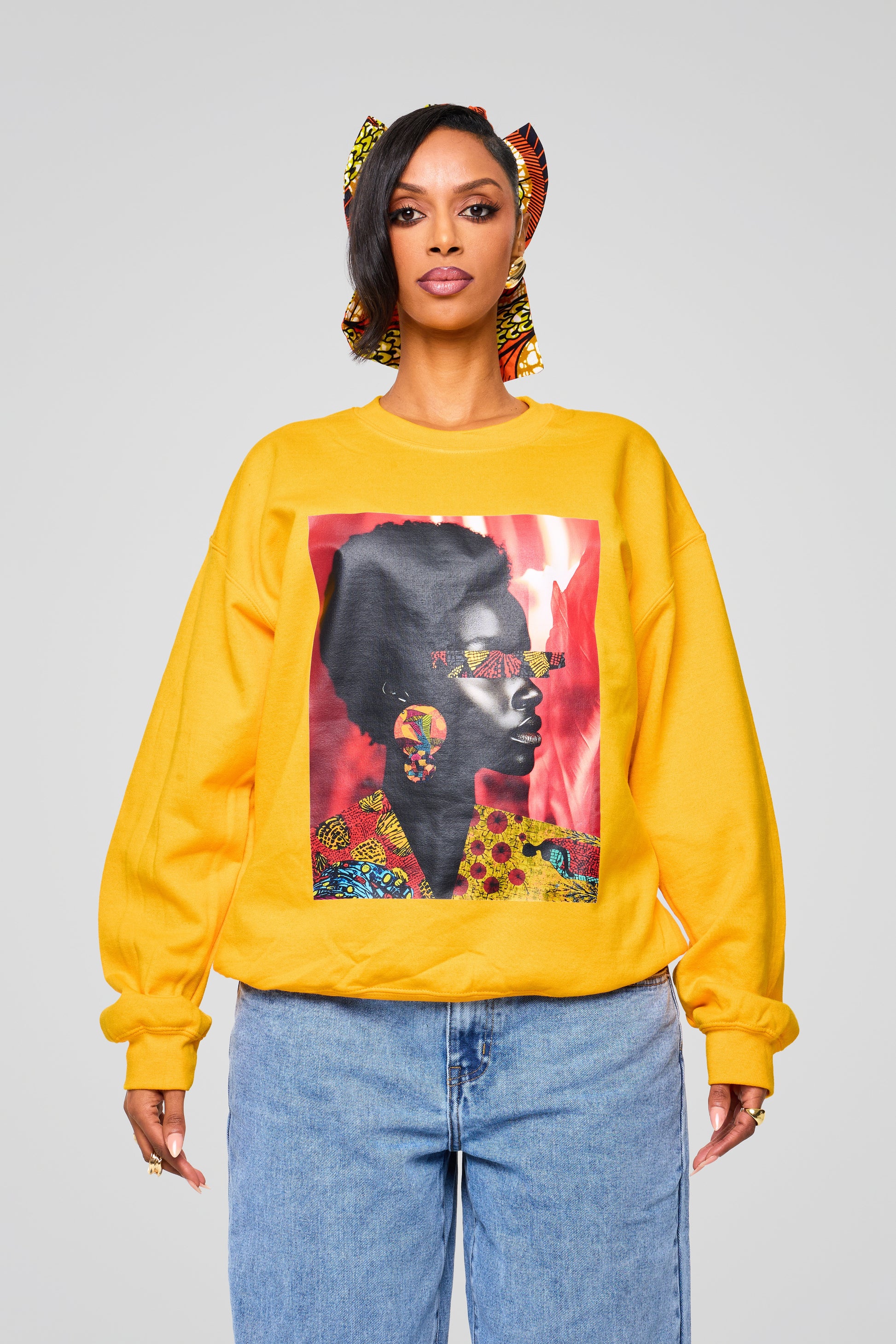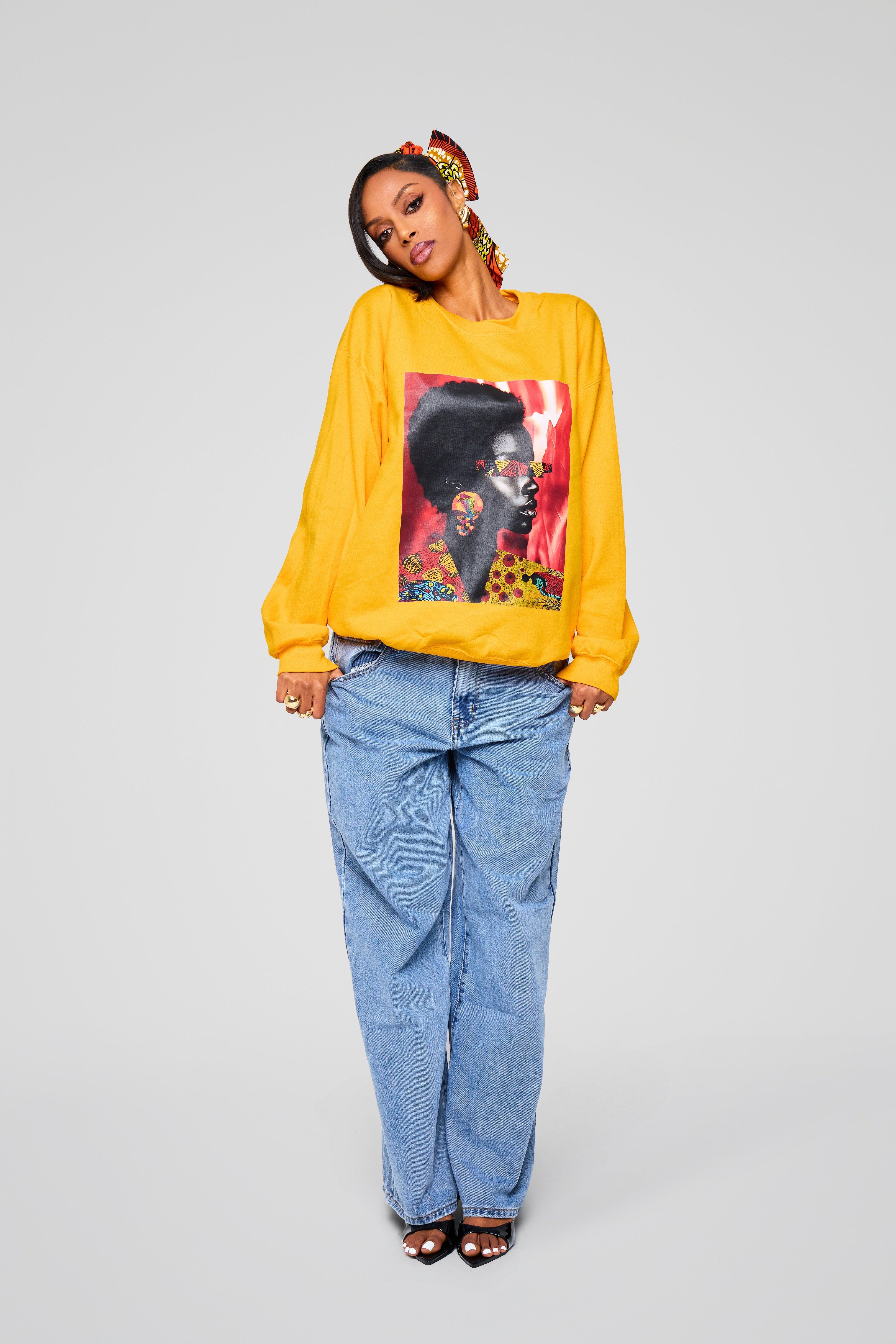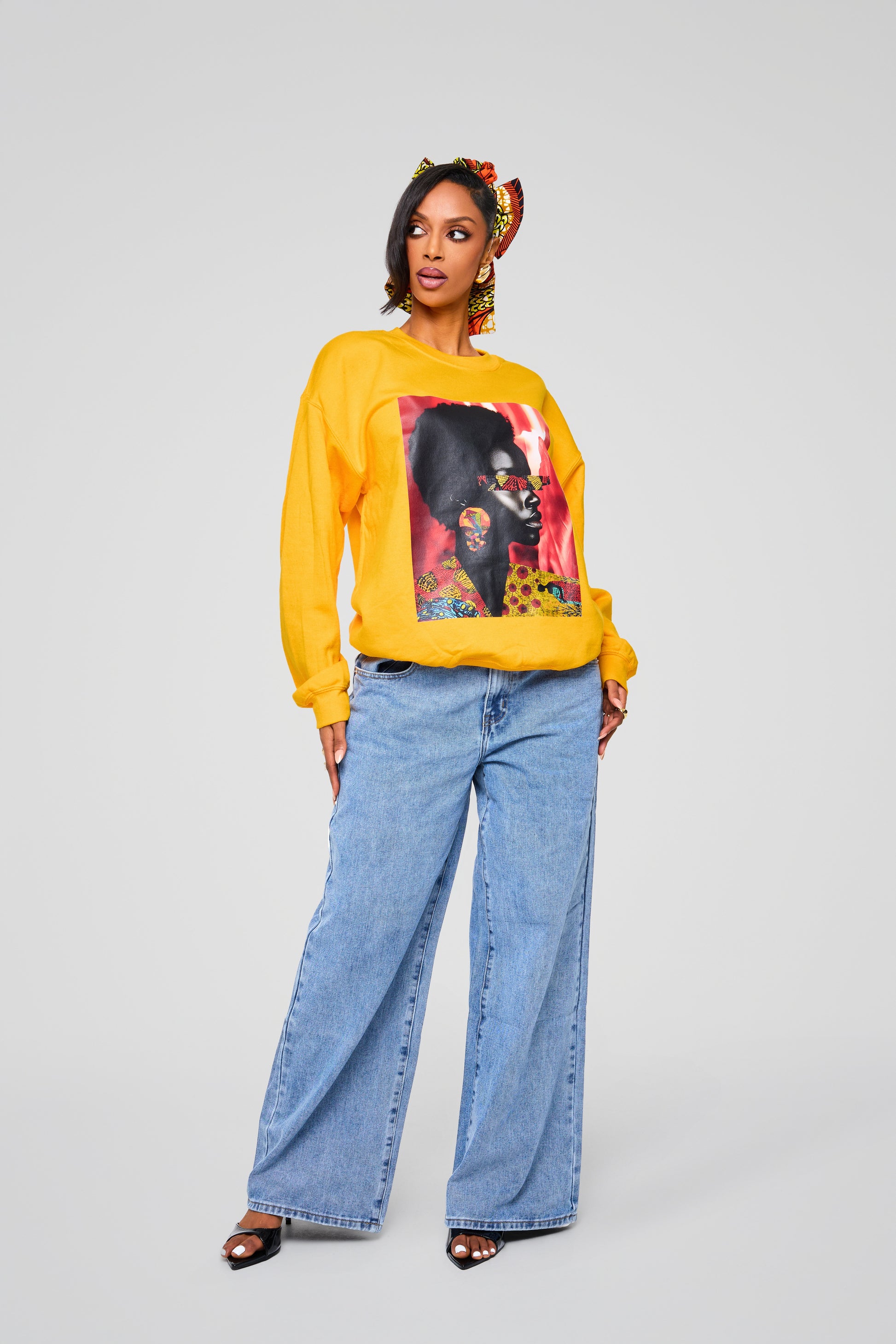 This relaxed-fit T-shirt features a striking graphic print celebrating African beauty and individuality. Perfect for everyday wear with jeans, skirts, or layered under a blazer for an elevated streetwear look.