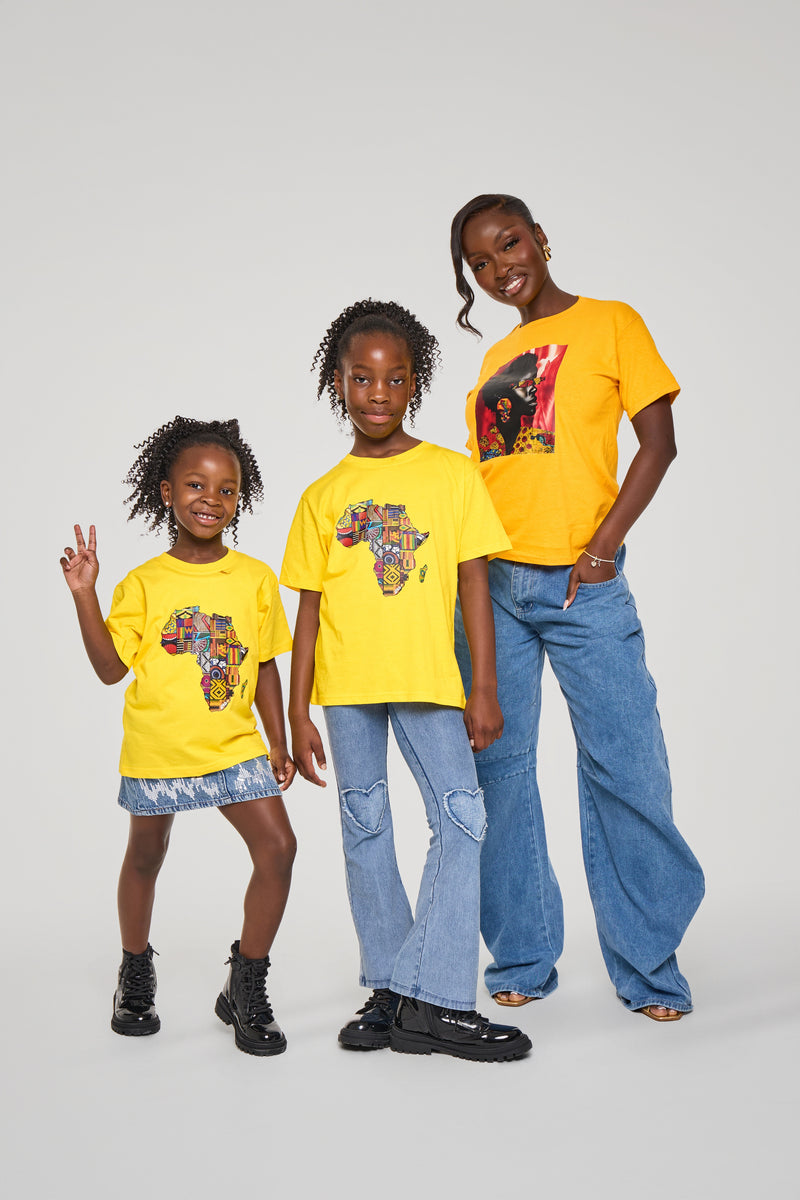 This relaxed-fit T-shirt features a striking graphic print celebrating African beauty and individuality. Perfect for everyday wear with jeans, skirts, or layered under a blazer for an elevated streetwear look.