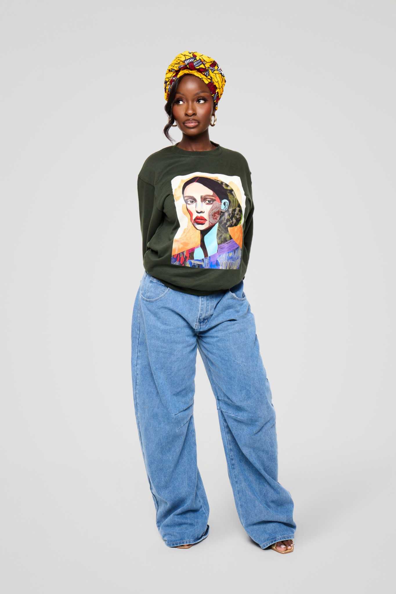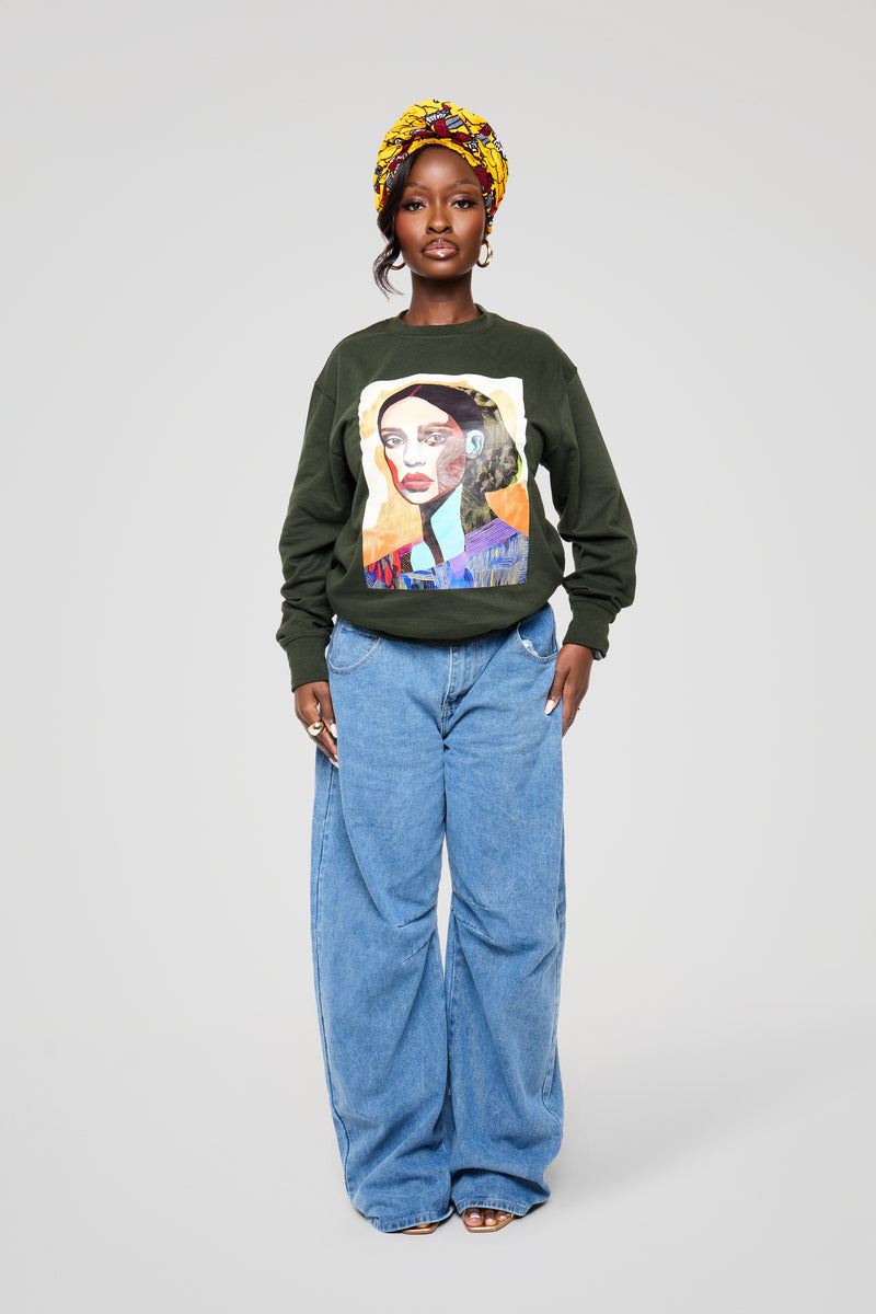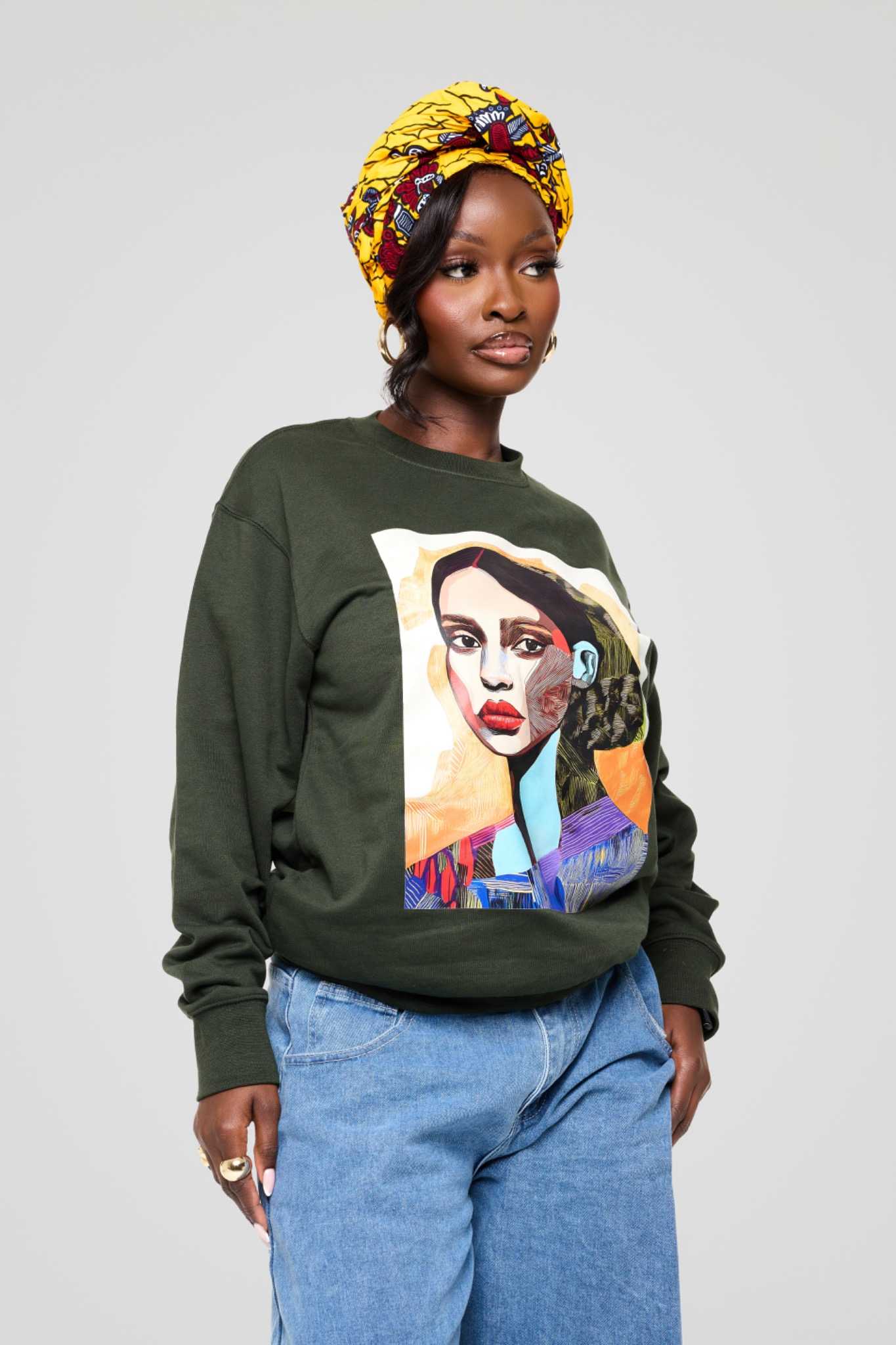 This soft, relaxed-fit sweatshirt features a striking African-inspired portrait print that turns an everyday essential into a statement piece. Made from cotton-blend fleece, it’s warm, breathable and perfect for off-duty days. The artwork adds colour, culture and personality to your look, easy to dress up or down.