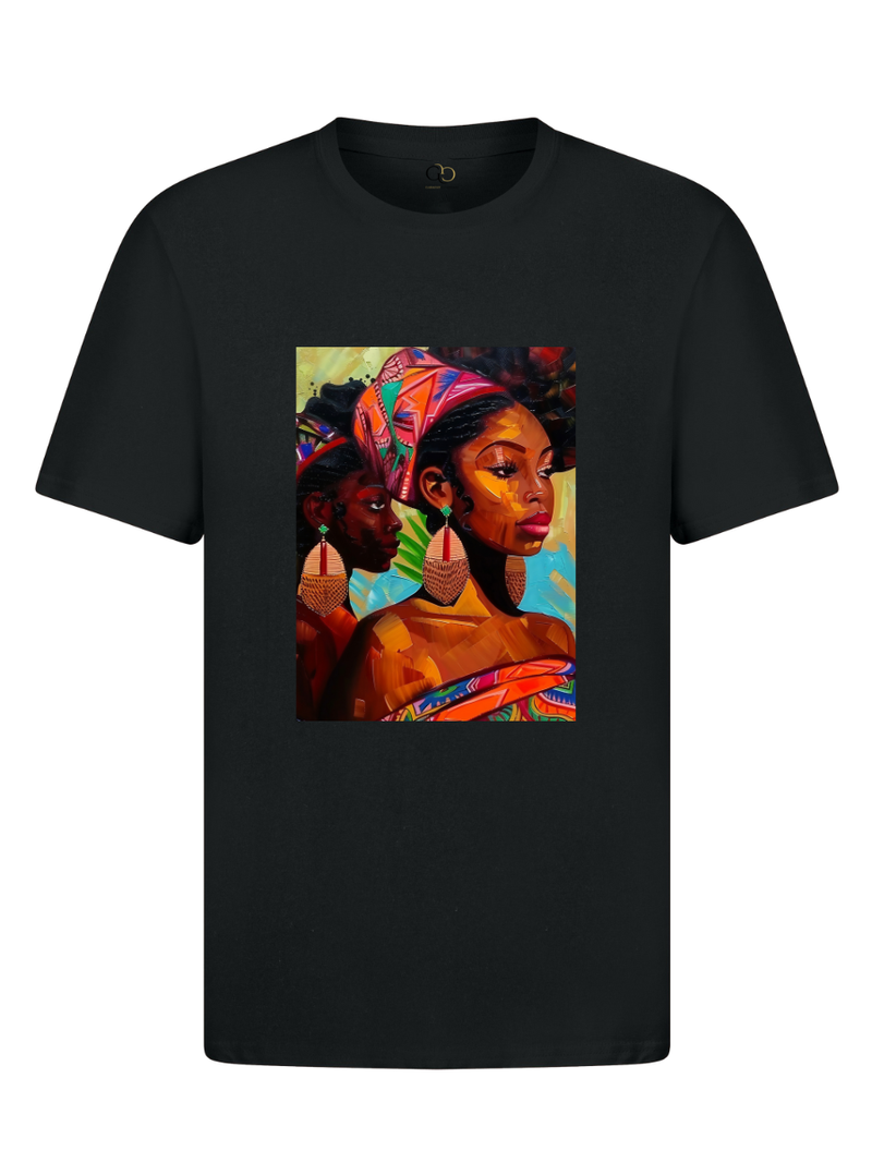 This relaxed-fit T-shirt features a striking graphic print celebrating African beauty and individuality. Perfect for everyday wear with jeans, skirts, or layered under a blazer for an elevated streetwear look.