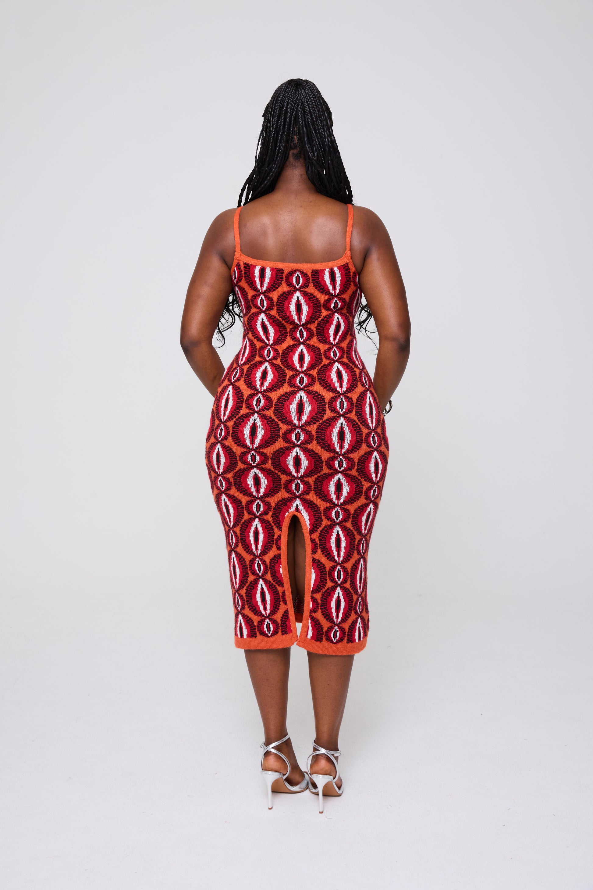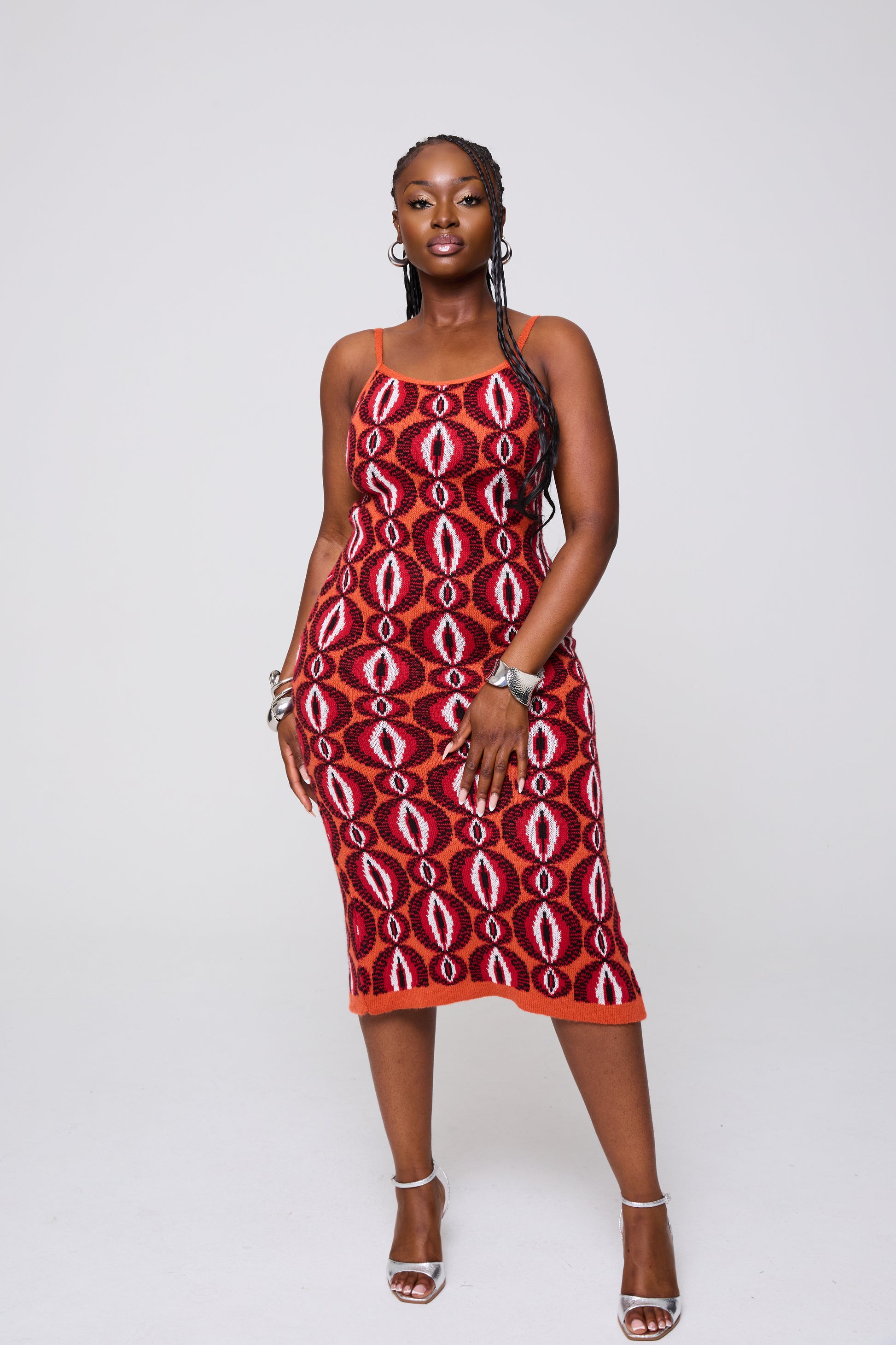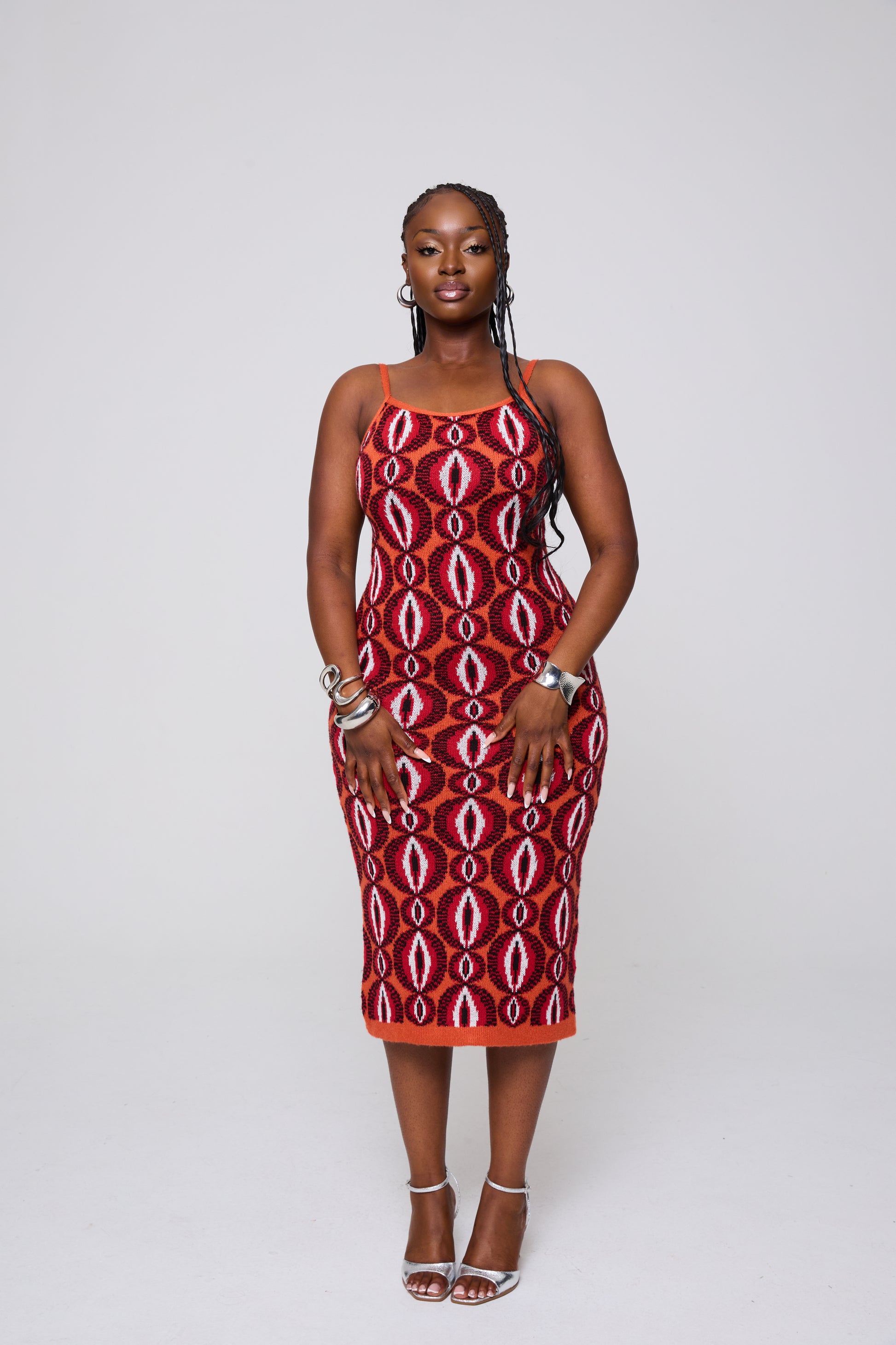 Step into effortless elegance with this bold two-piece knitwear set, crafted with signature Grassfields artistry. The fitted midi dress hugs your curves while the cropped button cardigan adds structure and versatility.